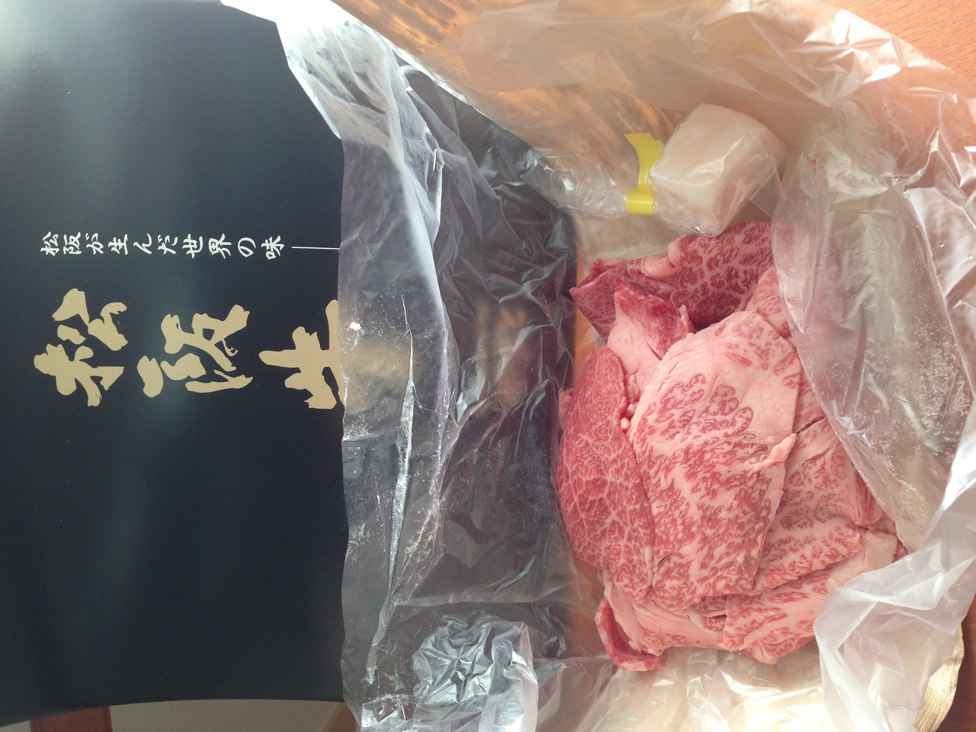 ゆっくり冷蔵庫解凍したお肉は、とてもきれいな色をしていました。霜の入り方の美しいこと・・・。これぞさすが和牛だな!!といった感じです。