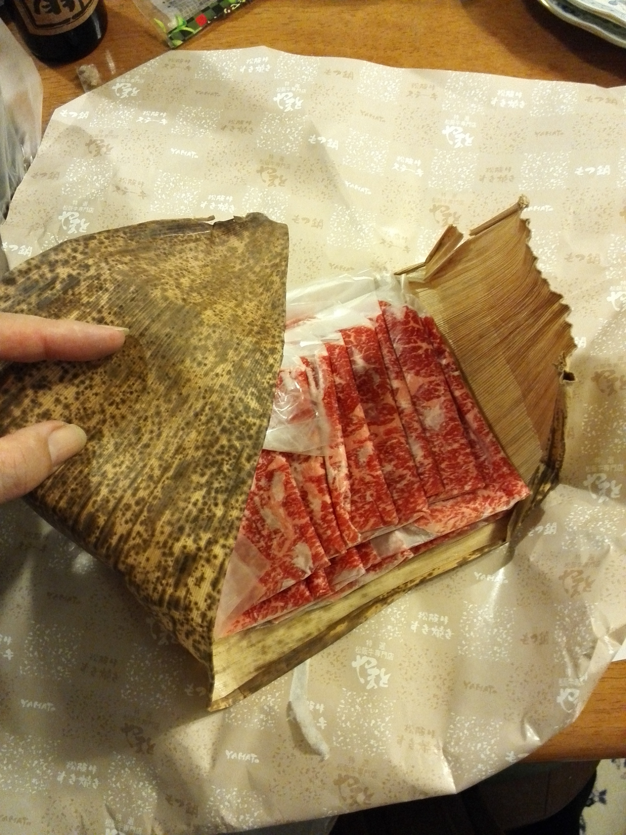 お肉は一枚一枚ビニールで包んであり、それを竹の皮で包んでいて、贈答用にしても豪華な感じがしていいと思います。