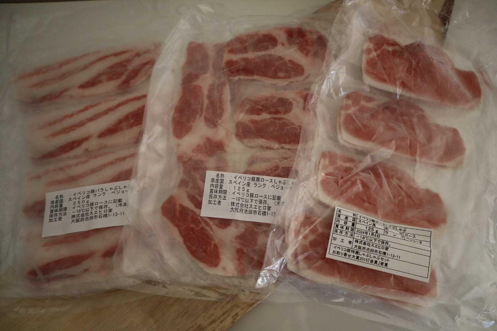 お肉のお色が国産の豚肉とは違う印象です。赤身のお色は鮮やかで色が濃く、脂身は真っ白で美しいです。