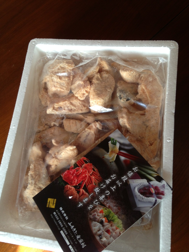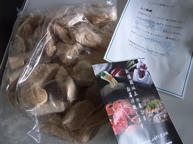 箱を開けると大きな袋にどっさりとふぐのから揚げが!!