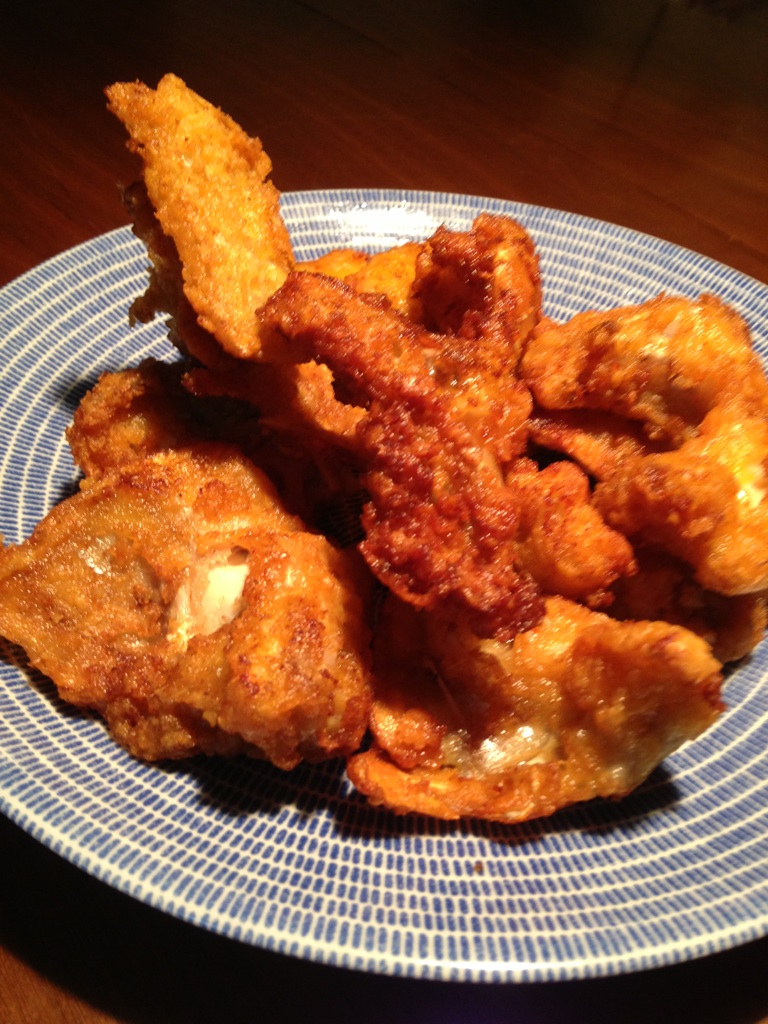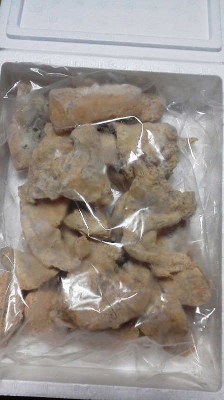 早速袋から出し冷凍のまま揚げました。170度で8分くらいできつね色になり中に火も通りました。