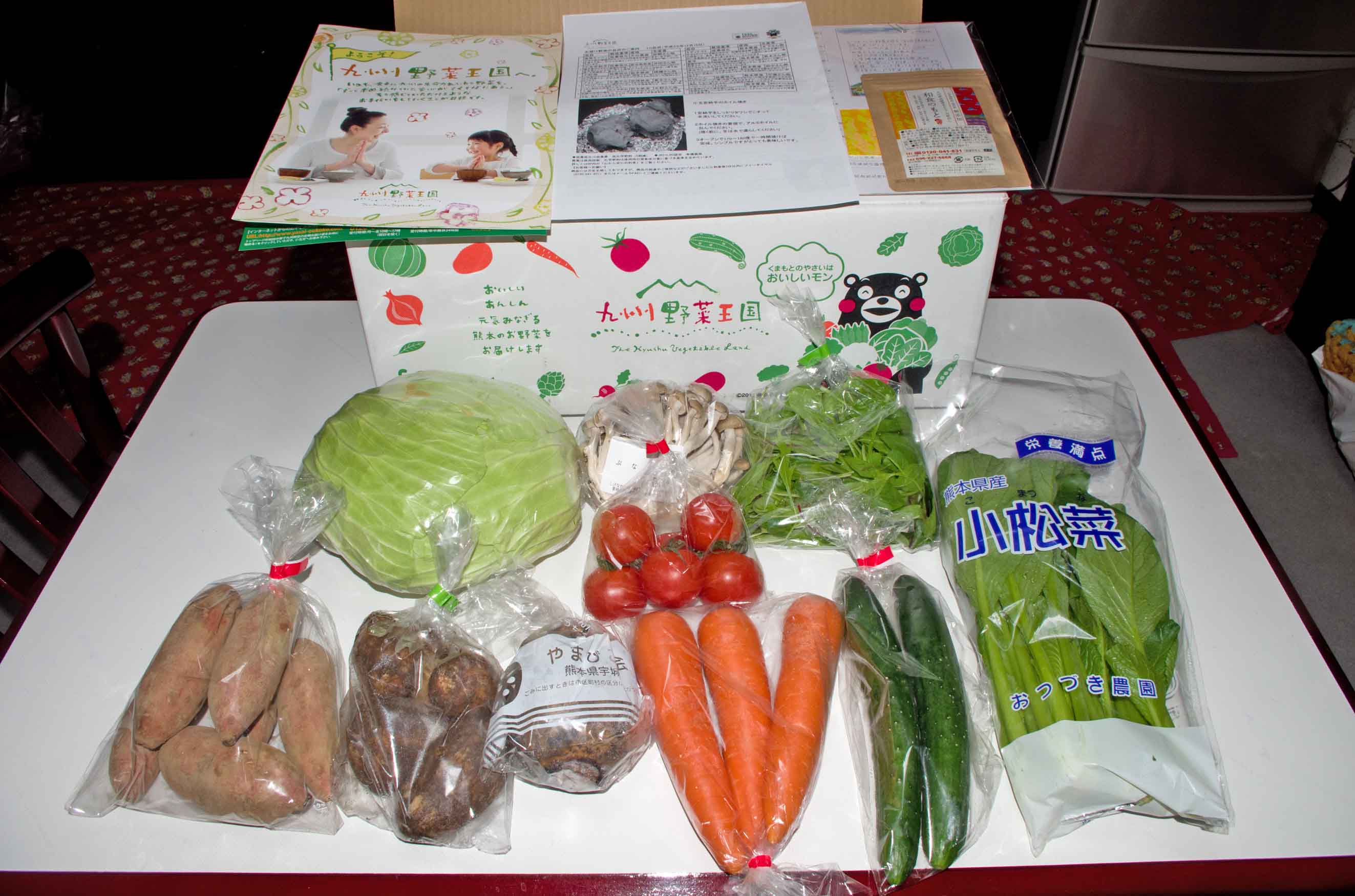 熊本・九州の新鮮で旬の野菜セット10品目です。よく使う野菜を中心としたシンプルなコースです。目安は2人~3人家族で約1週間分です。収穫して最短1~2日でお届け!安心・安全な九州産のお野菜だから今まで欠かせなかった産地選びも必要なし!時季ごとに出てくる旬の野菜をセレクトしてお届け!全品目放射能検査済み。お子様のいるご家庭でも安心してお召し上がりいただけます。