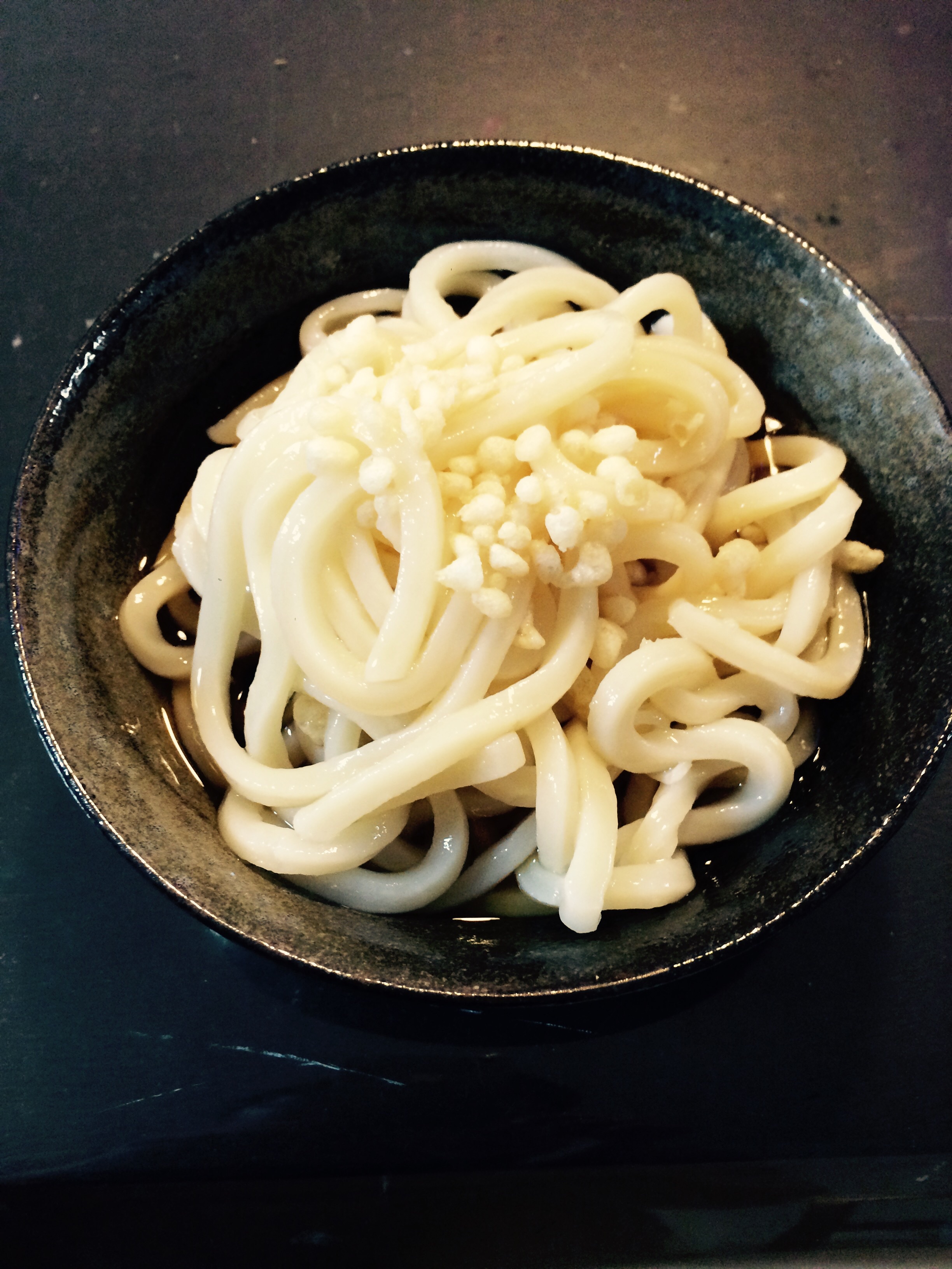 おすすめの食べ方は釜揚げうどんです。茹でたての熱々うどんに、生卵と醤油、ネギ、ゴマだけで十分美味しいです。