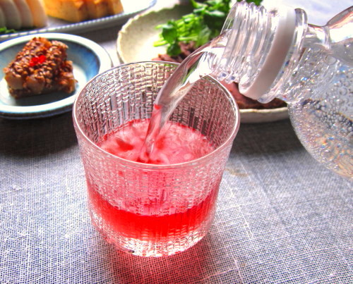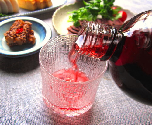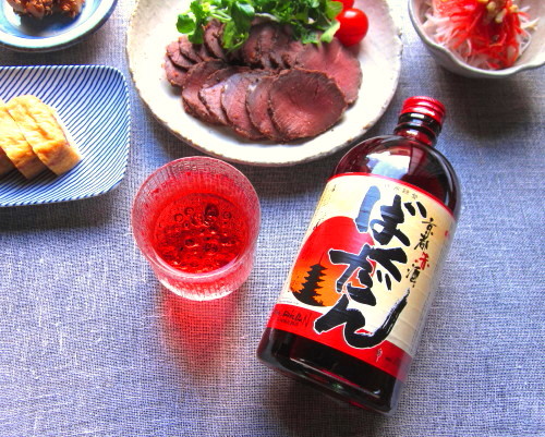「京都赤酒ばくだん」は、50年以上前から京都の下町のお好み焼き屋などで提供されてきたカクテルで、赤玉ポートワインと焼酎を混ぜたリキュールでぶどうジュースのような色と味わいです。度数は20度あり、その酔いやすさから「ばくだん酒」と呼ばれてきたのが名前の由来です。