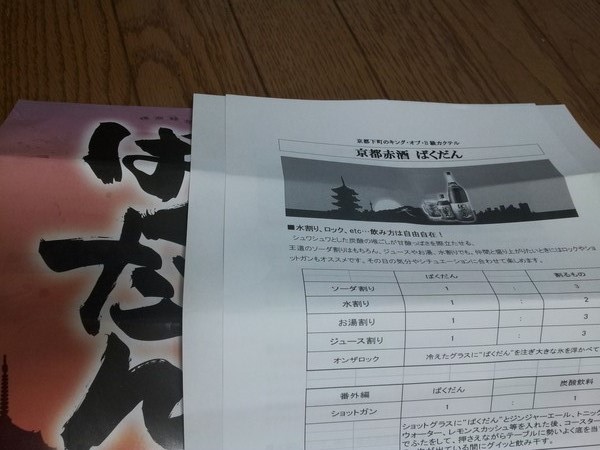 また、親切に"ばくだん"の商品紹介の広告(笑)と"ばくだん"の飲み方のレパートリーの紹介が入ってました!