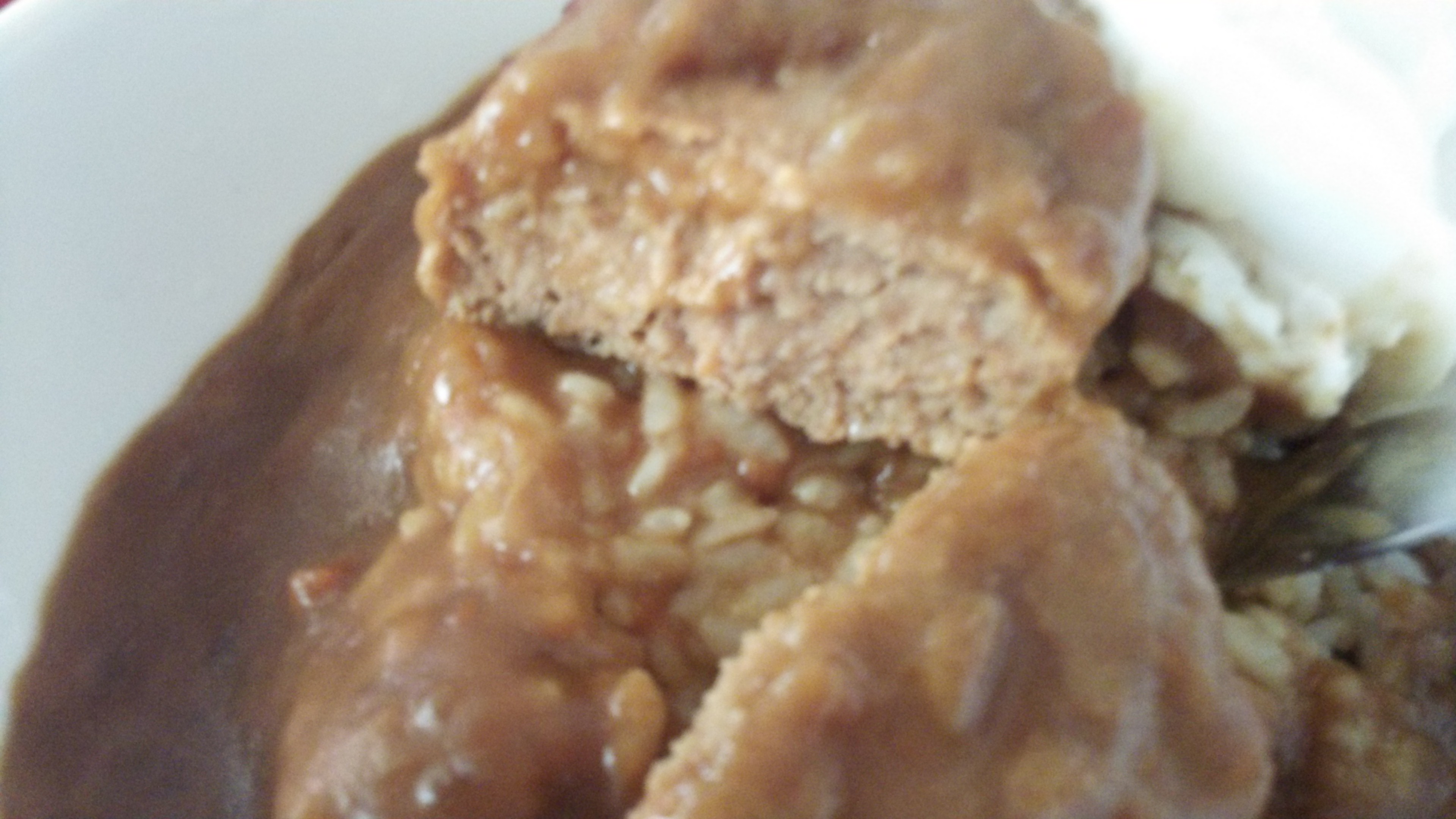 そして鳥ハンバーグなのですが、封を開けてカレーをご飯にかけている時、まさに「ゴロッ」といった感じで出てきました!思った以上のボリュームと大きさでした。食べた感じもパサパサ感などは全くなく、胃にもたれる感じもなく、最後まで美味しく食べられました。このボリュームなら男性の方も満足される思います!