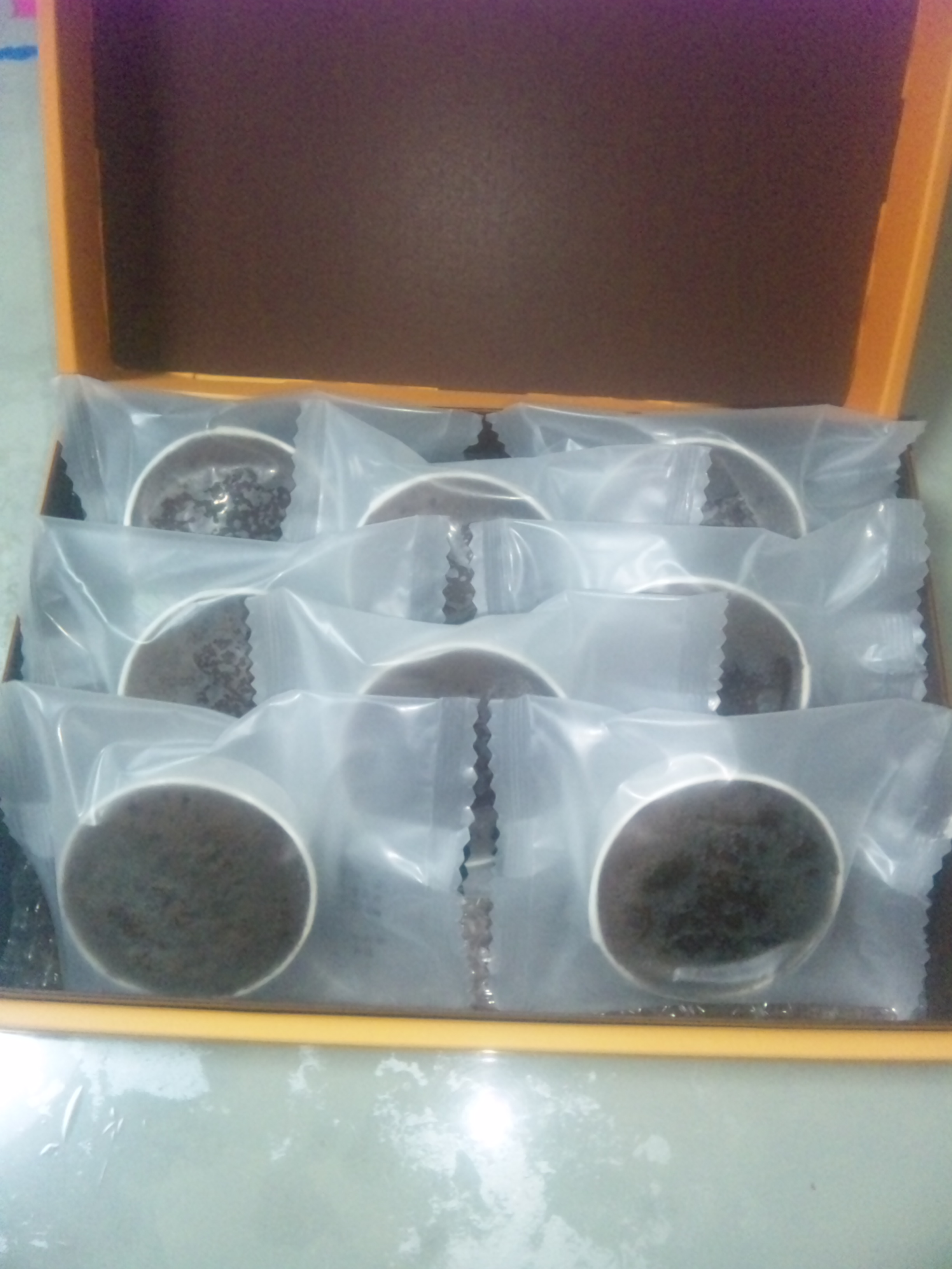 外側の生地から食べると、甘さ控えめで、余り濃厚な感じはありませんが、中の生チョコはしっかり甘く、まったりした食感です。