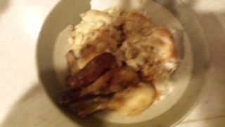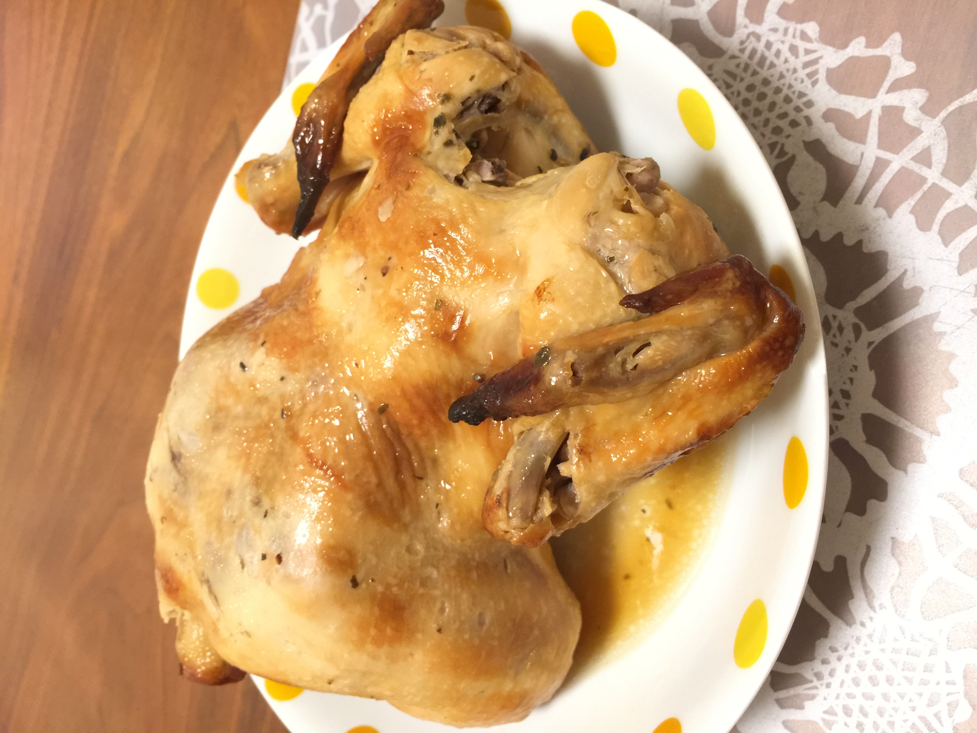 我が家で一番大きな皿を準備して、チキンを載せました。
