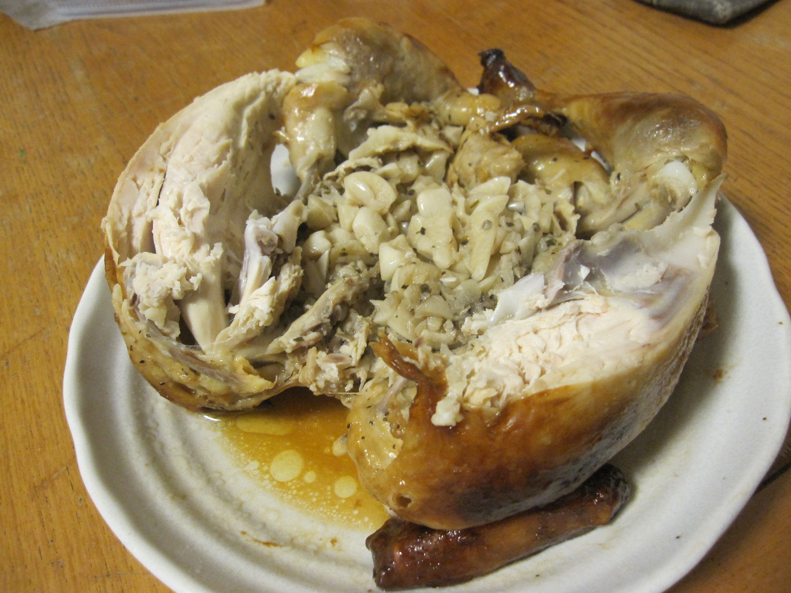 お腹の中に詰まっているニンニクもおいしくて、ご飯と一緒に食べると、ご飯が進みます。