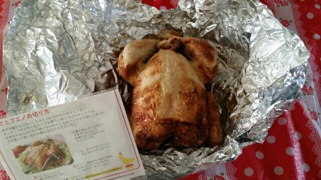 丸一羽のチキンを切り分けるのは、初めての経験ですが、切り方の説明書があったので、切り分けることが出来ました。