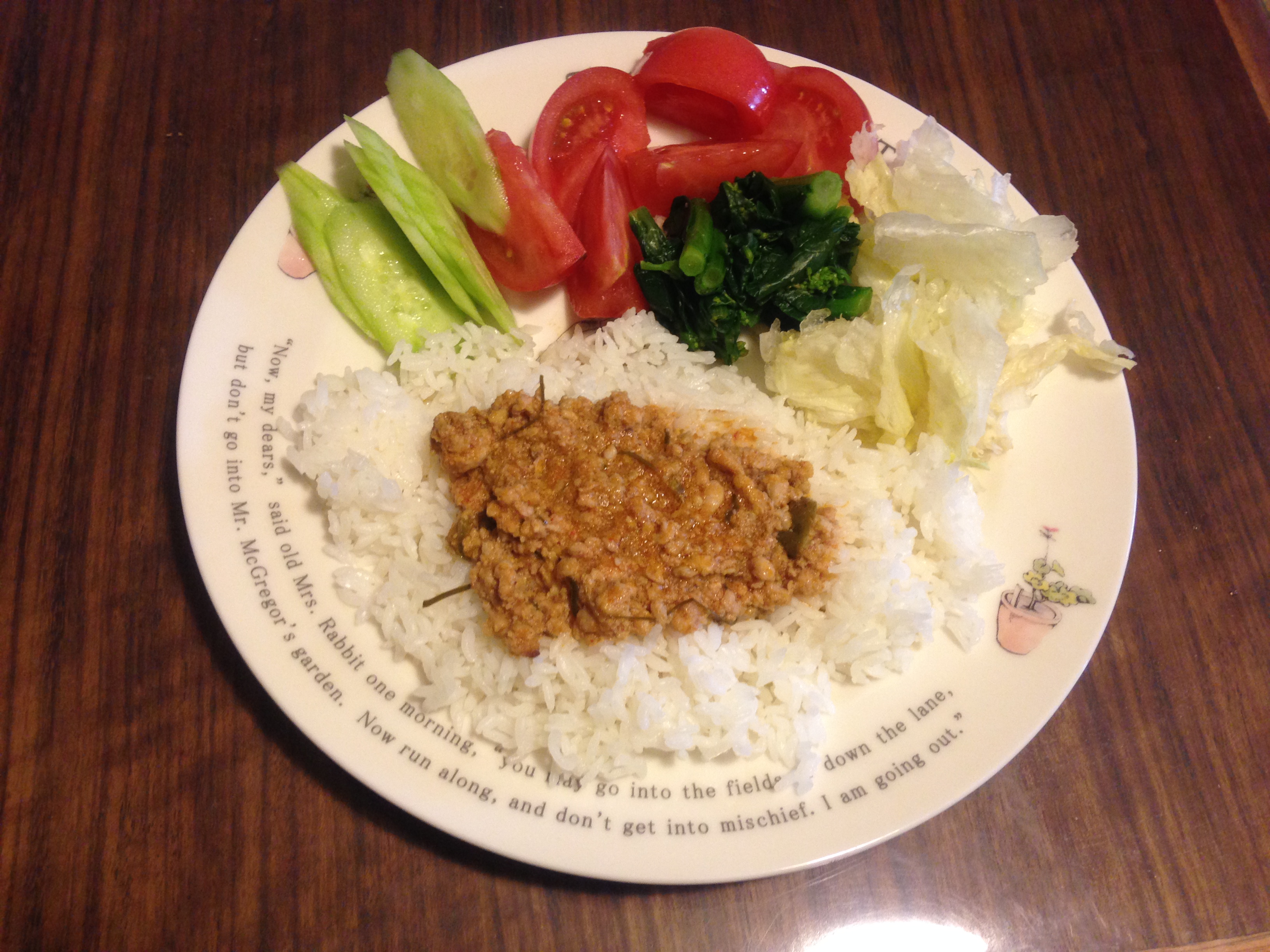 何を作ろうか悩んだ末、タイカレーとチキンライスを作ってみました。