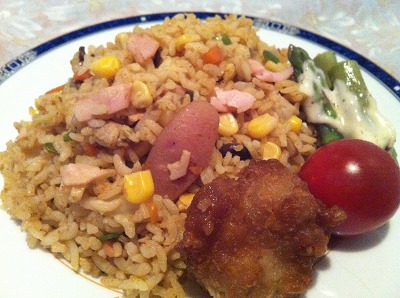 チキンライスにもぴったりでした。調味料が短時間で簡単に均一に混ざり、炒め過ぎることなくできるので、パラパラなのに一粒一粒がふっくらしたチキンライスが作れました。普通のお米では、全体に調味料が混ざるように、炒め過ぎてご飯粒が潰れたりお米が乾燥したりと、うまく出来ないことも多かったので、出来上がりの完成度に感動するほどでした。