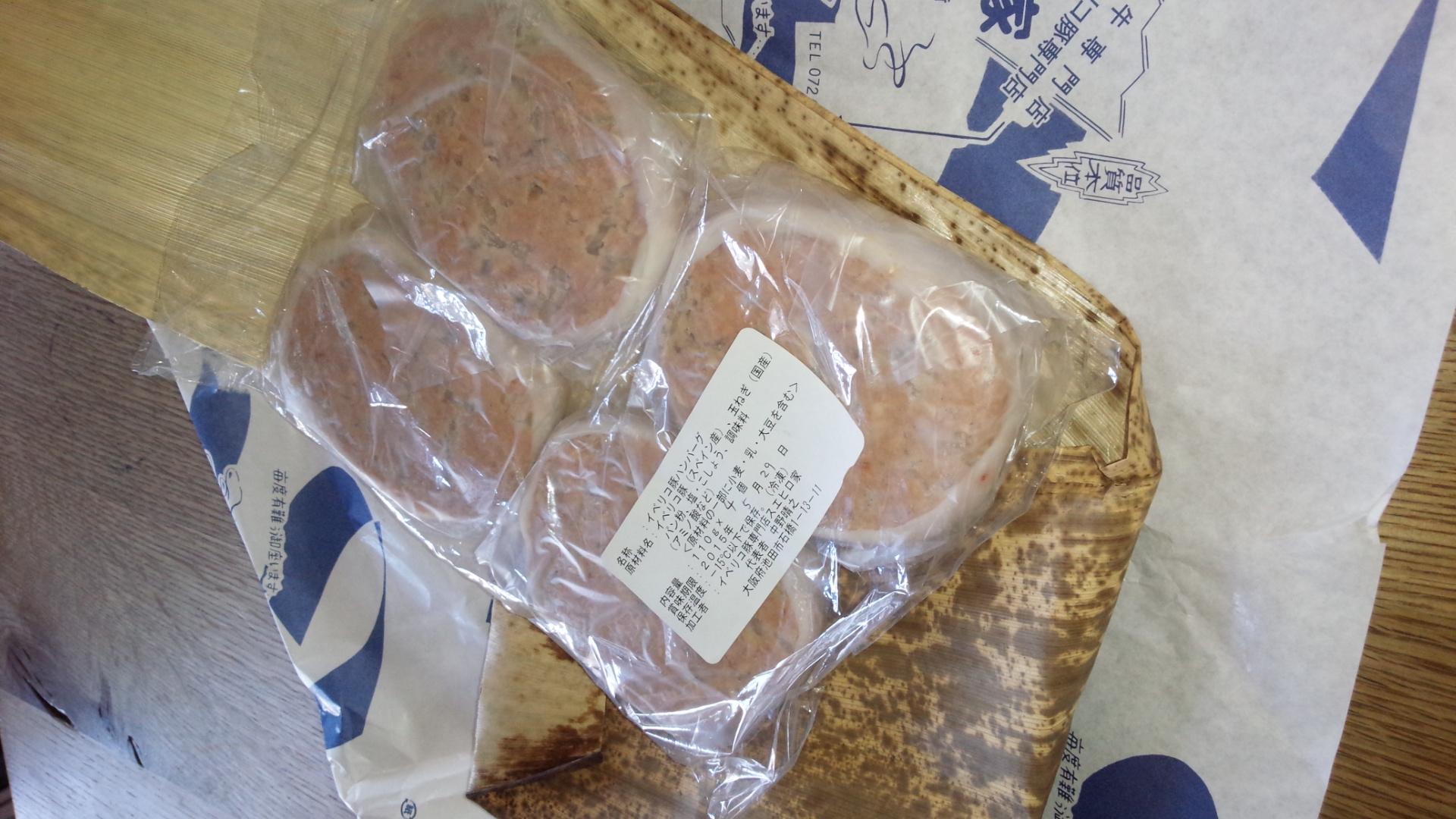 高級感あふれるシルバーの箱に入っています。ワクワクしながら箱を開けると、包装紙と天然の竹皮で包まれたハンバーグが登場しました。さらにハンバーグは一つ一つ丁寧にシートに包まれています。一つずつ包まれているのは使いやすくて助かります。