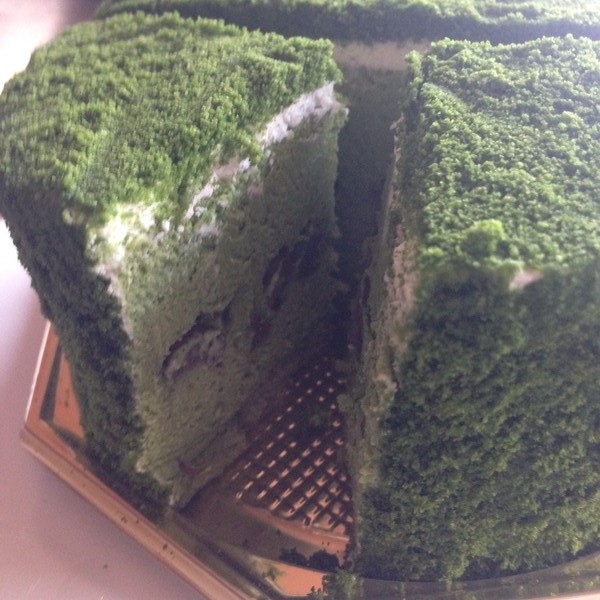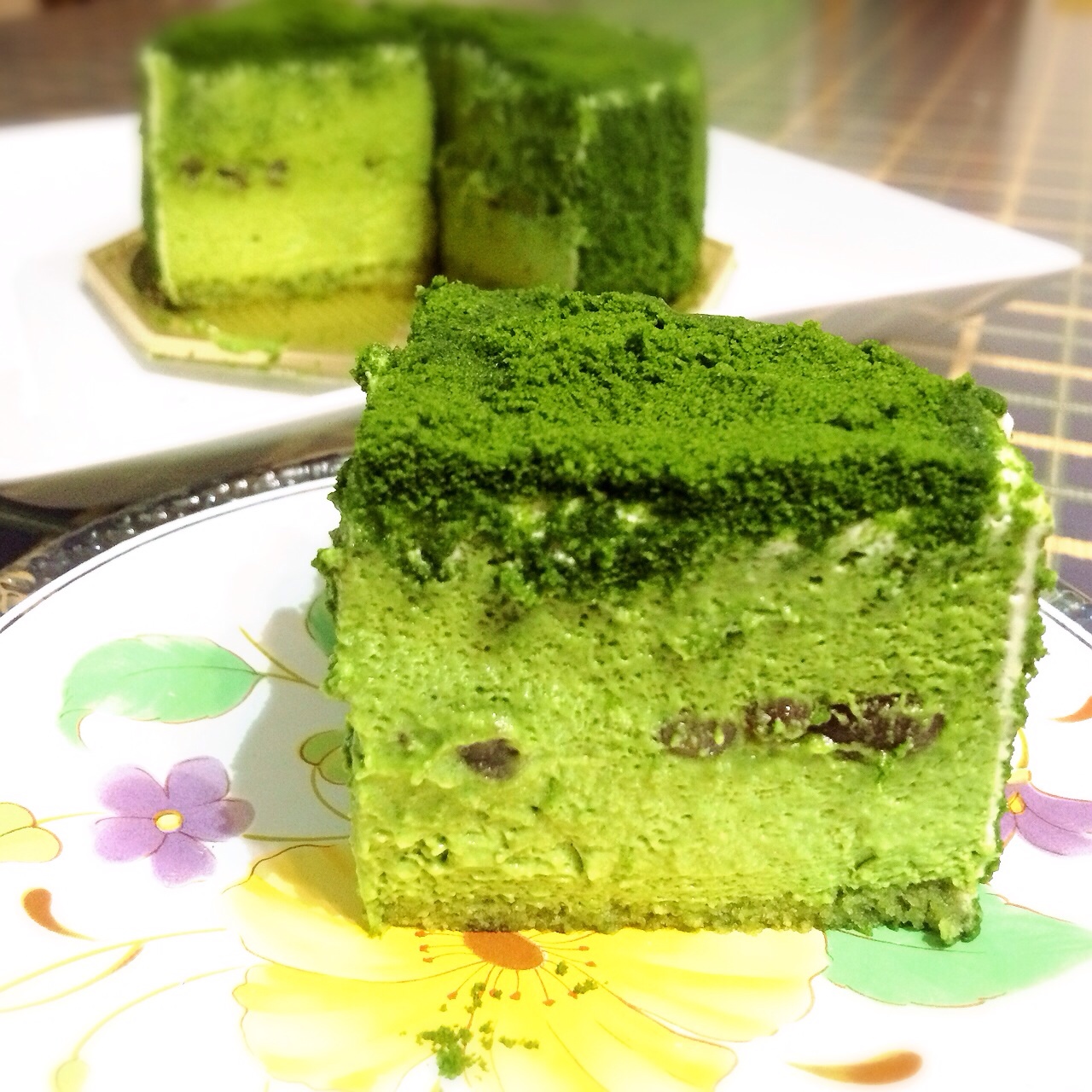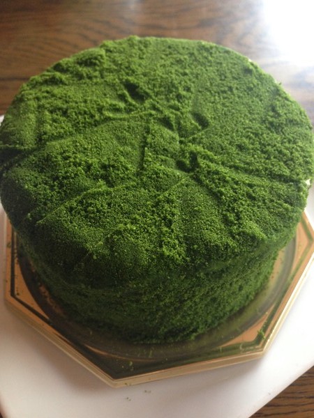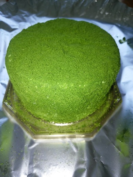 1つ直径12cm 高さ6.5cm、全体をお抹茶の粉末でコーティングしています。