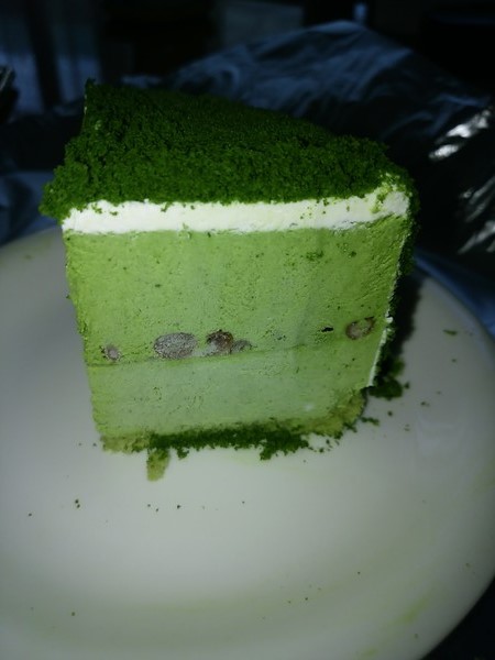 底の部分も回りにかかているのも全部抹茶味だけど、それぞれの味、食感が違って、楽しめました。ムースの上に白いクリームがあるのも、味に変化が感じられ、いいアクセントになっているなと思いました。