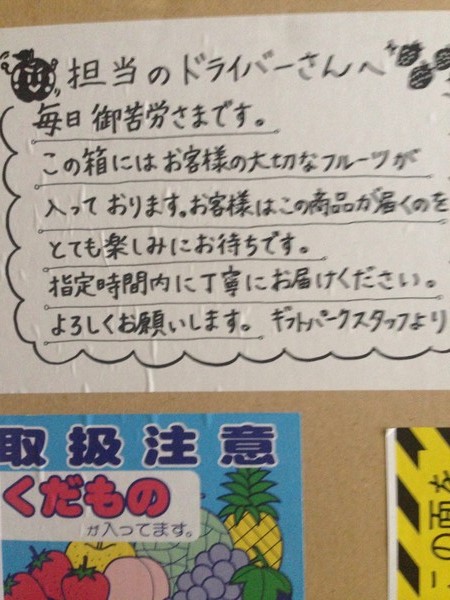 バランスが難しい商品だと思ったのですが、とても慎重に配達してもらえました。