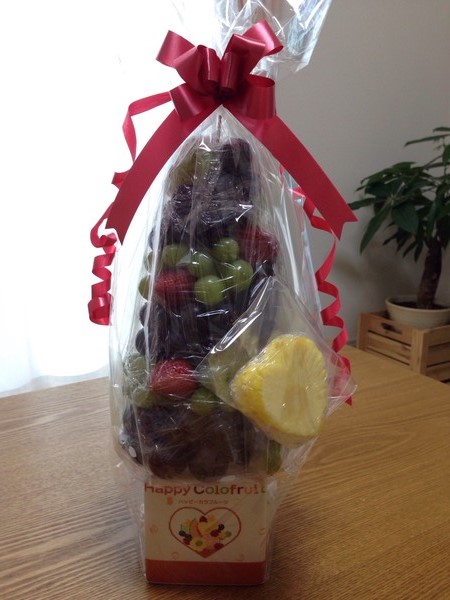 ハッピーカラフルーツは、果物を花束に見立てたフルーツアレンジメントです。大阪市中央卸売市場から毎朝新鮮な果物を仕入れ、お作りした当日中に発送しております。