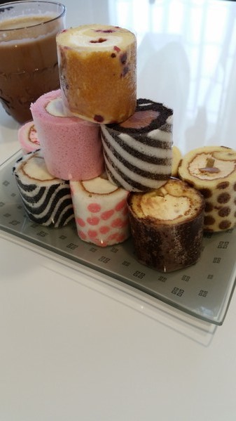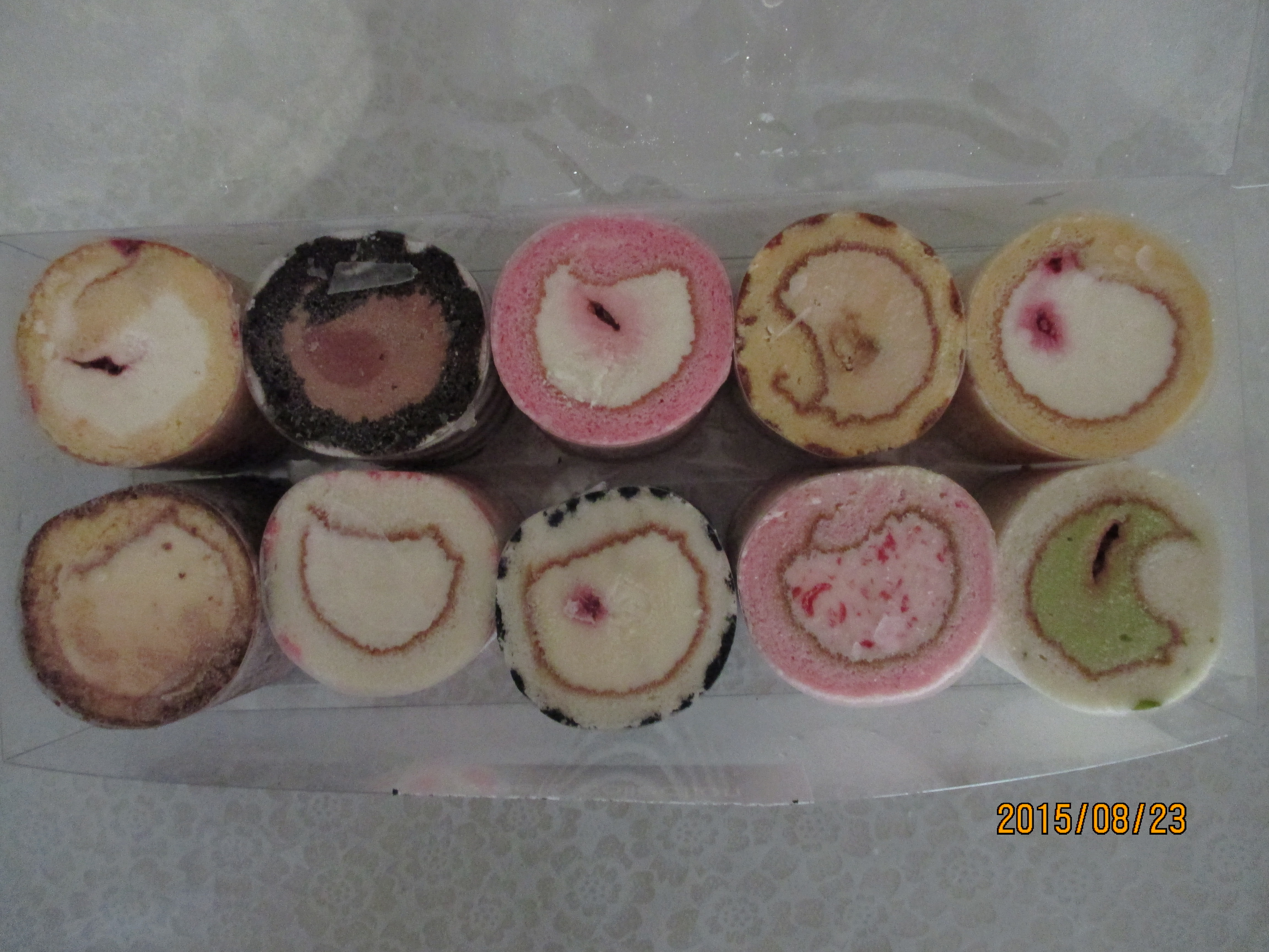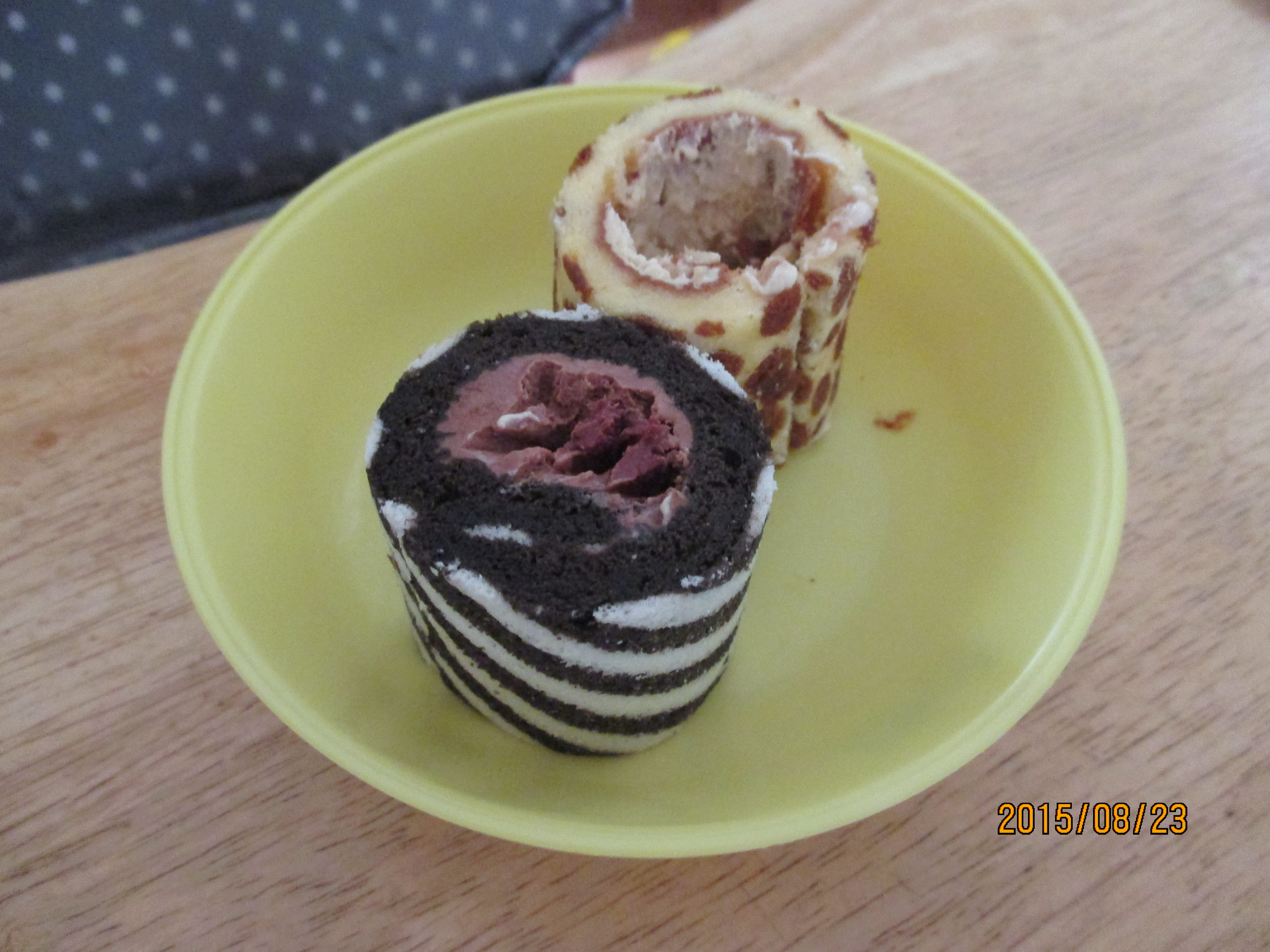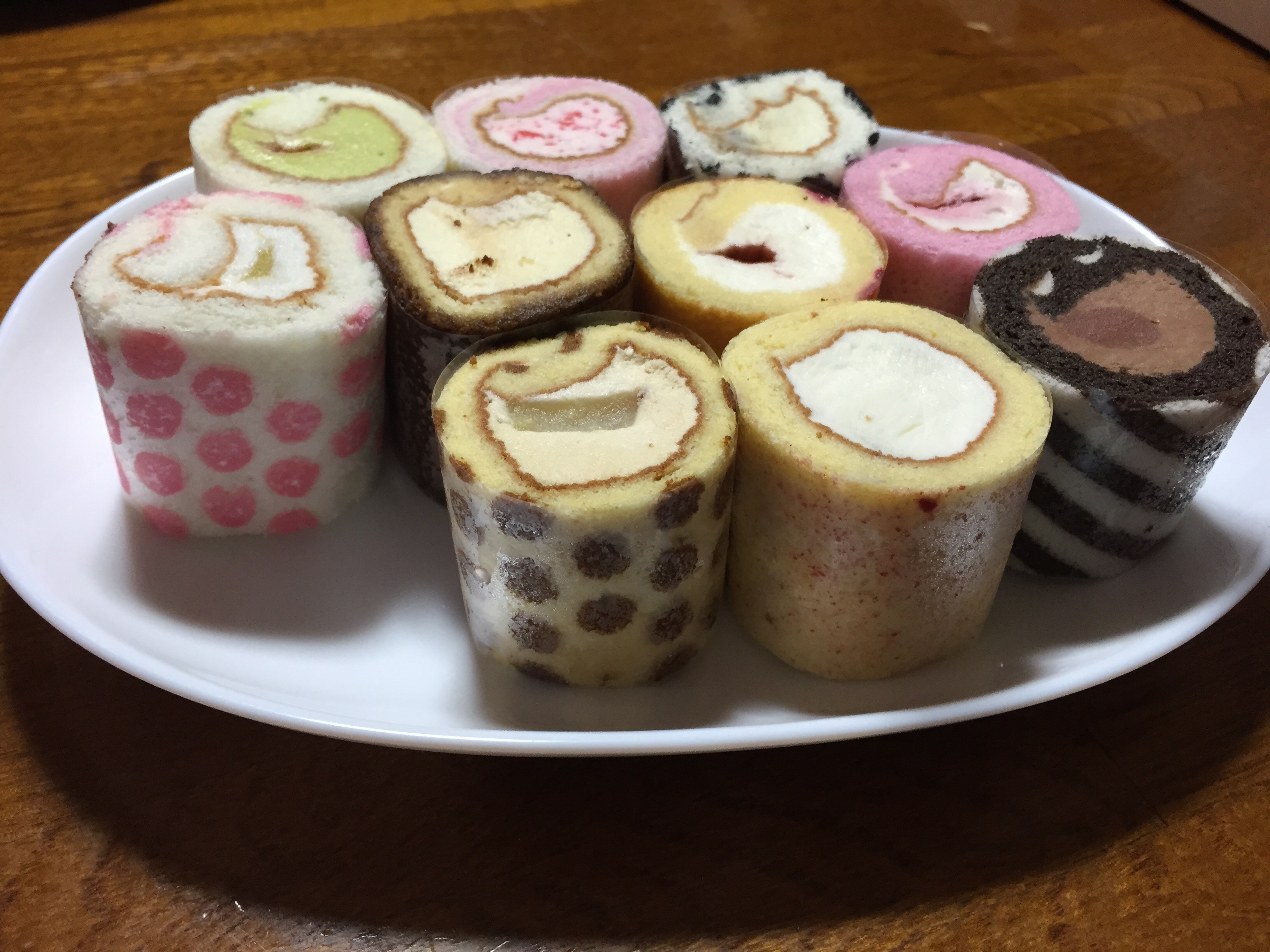 箱を開けてみると10個のミニロールケーキが。思っていたよりもサイズは小さいです。大人だと二口くらいでいけてしまいます。しかしその分、ケーキだというのにカロリーを気にせず、後ろめたい思いもなくぱくぱく食べられてしまいます。生地はしっとりしたものと、食パンのような感じで少しぱさっとしたらものとがありました。個人的にはしっとりしたものの方が美味しくいただけました。