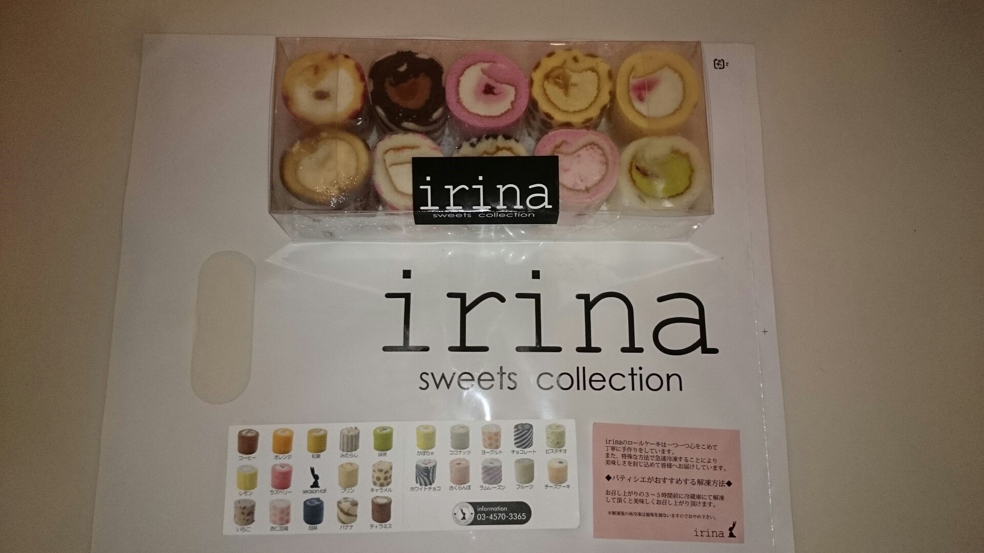 全25種のミニロールケーキの中でも特に人気の5種、チョコ、いちご、ラズベリー、キャラメルポワール、 チーズケーキと、女性からの支持が高い5種さくらんぼ、ホワイトチョコレート、杏仁豆腐、ピスタチオを合わせた10個セット(ロールケーキ1個の大きさ:直径約4㎝×高さ約4㎝)。可愛らしさ・華やかさ・美味しさを兼ね持つirinaのロールケーキは、大切な時間の演出のお役に立つ事間違いなしです。女子会やちょっとした手土産にもご利用くださいませ♪
