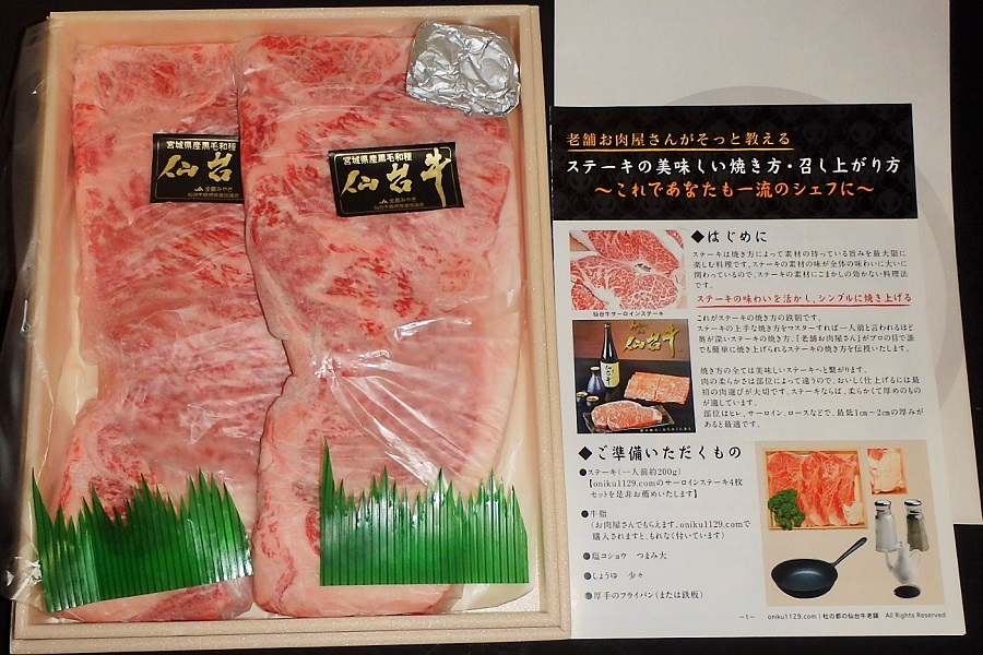商品と一緒に同封されます『ステーキの焼き方レシピ』をご覧頂きながら、焼いていただけるとシェフ顔負けの味付けができますよ♪