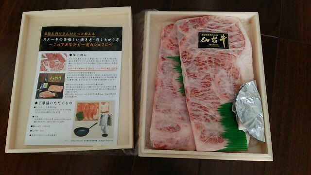 調理の方法が丁寧に書いてあり、冷蔵庫でゆっくり解凍した後、焼く前に常温に戻してサシの部分がいい感じに溶けて馴染んだ頃に、いざ調理!