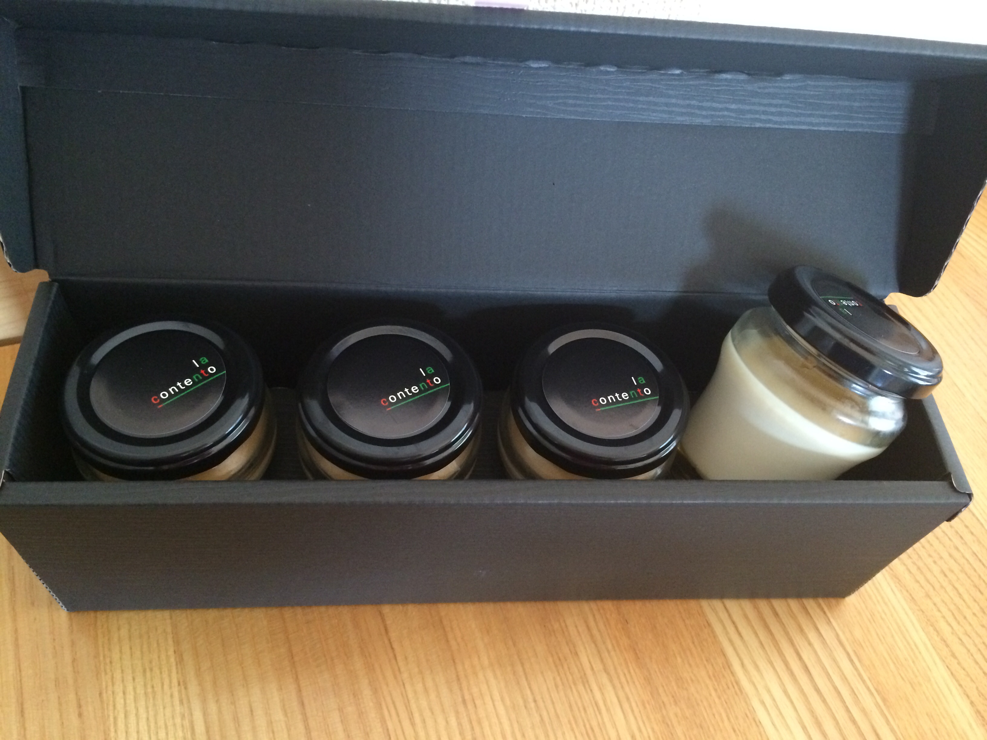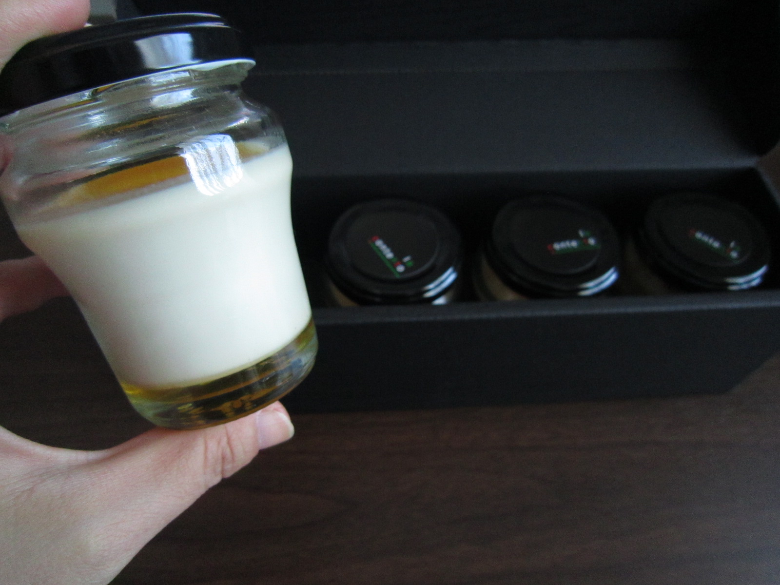 中を開けるとビン入りのパンナコッタが4個入っていました。
