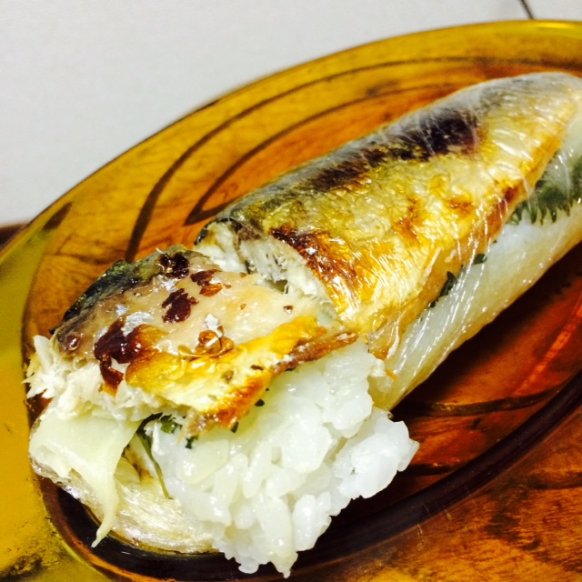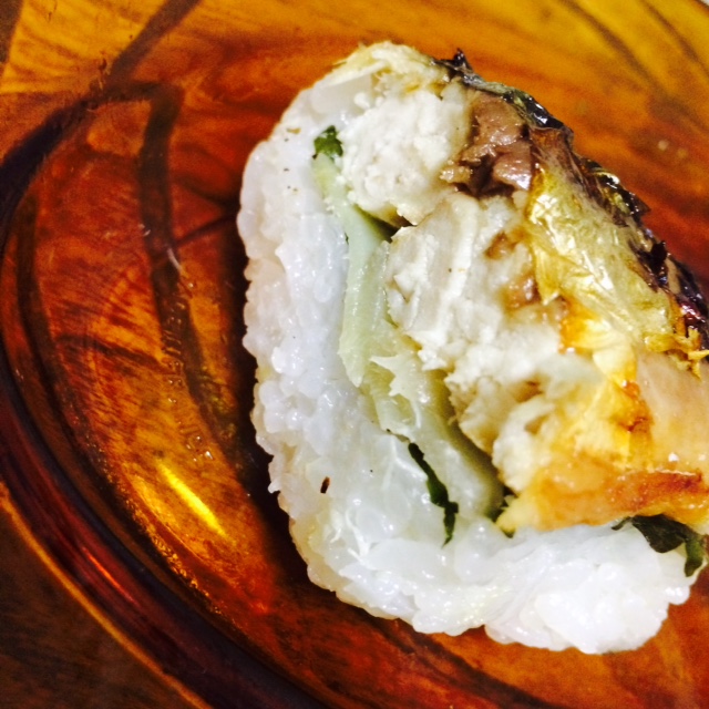 ご飯と鯖の間には、生姜と大葉が挟んであります。