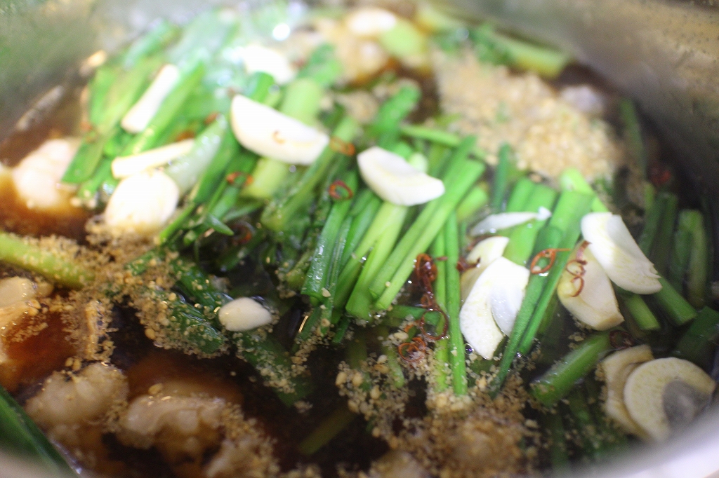 最初に「モツ」ですが、丁寧に下処理してあるのが分かるくらい綺麗に余分な脂肪も落とされていました!そして一つ一つのモツに弾力があり、とにかく食感がプリプリもちもち。口の中で弾けそうな噛み応えの歯ごたえに、噛めば噛む程溢れ出てくる旨みと甘みに感動~!!