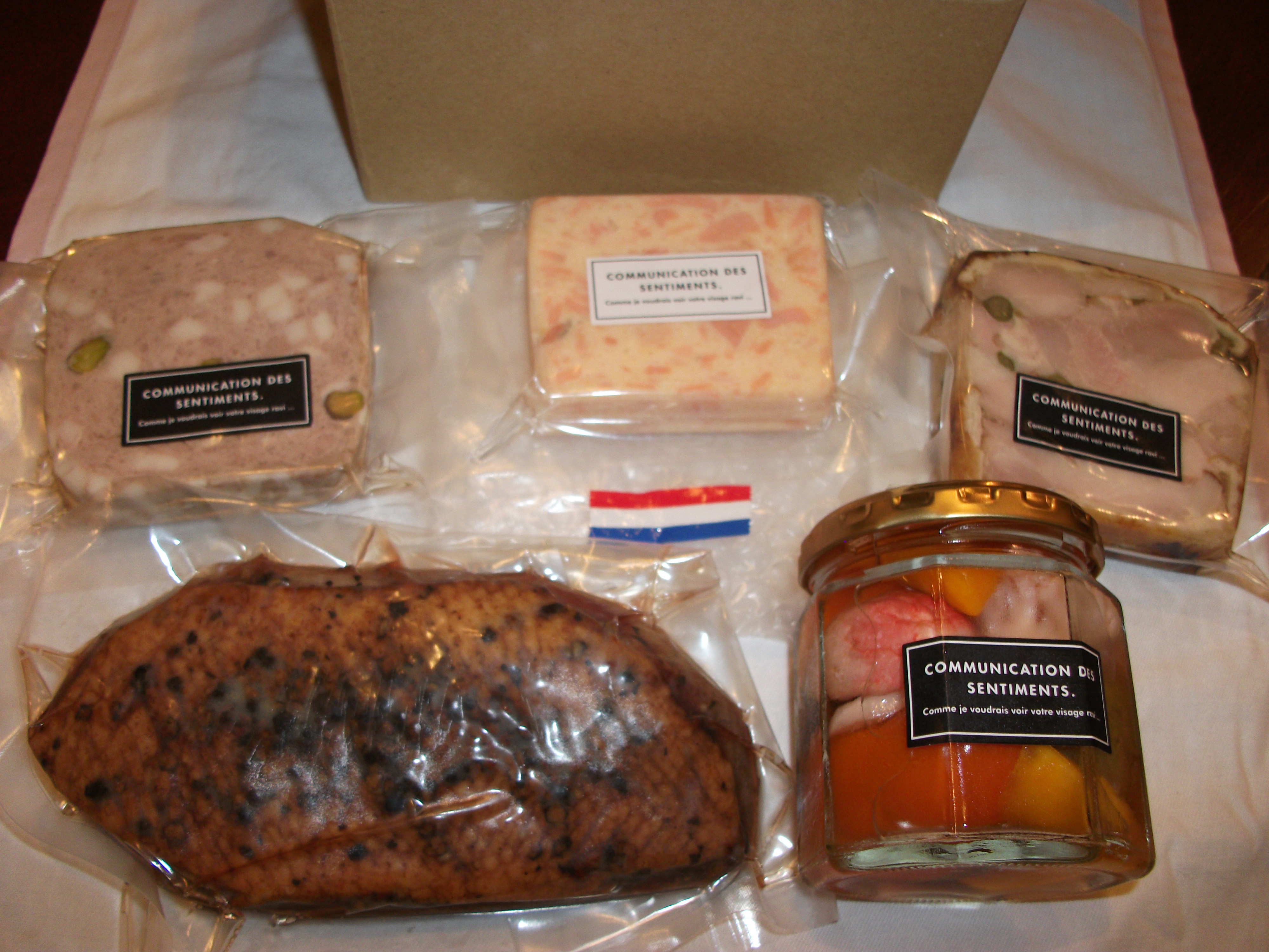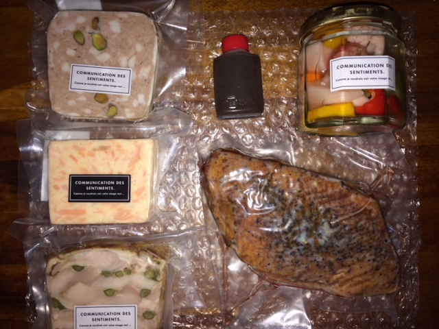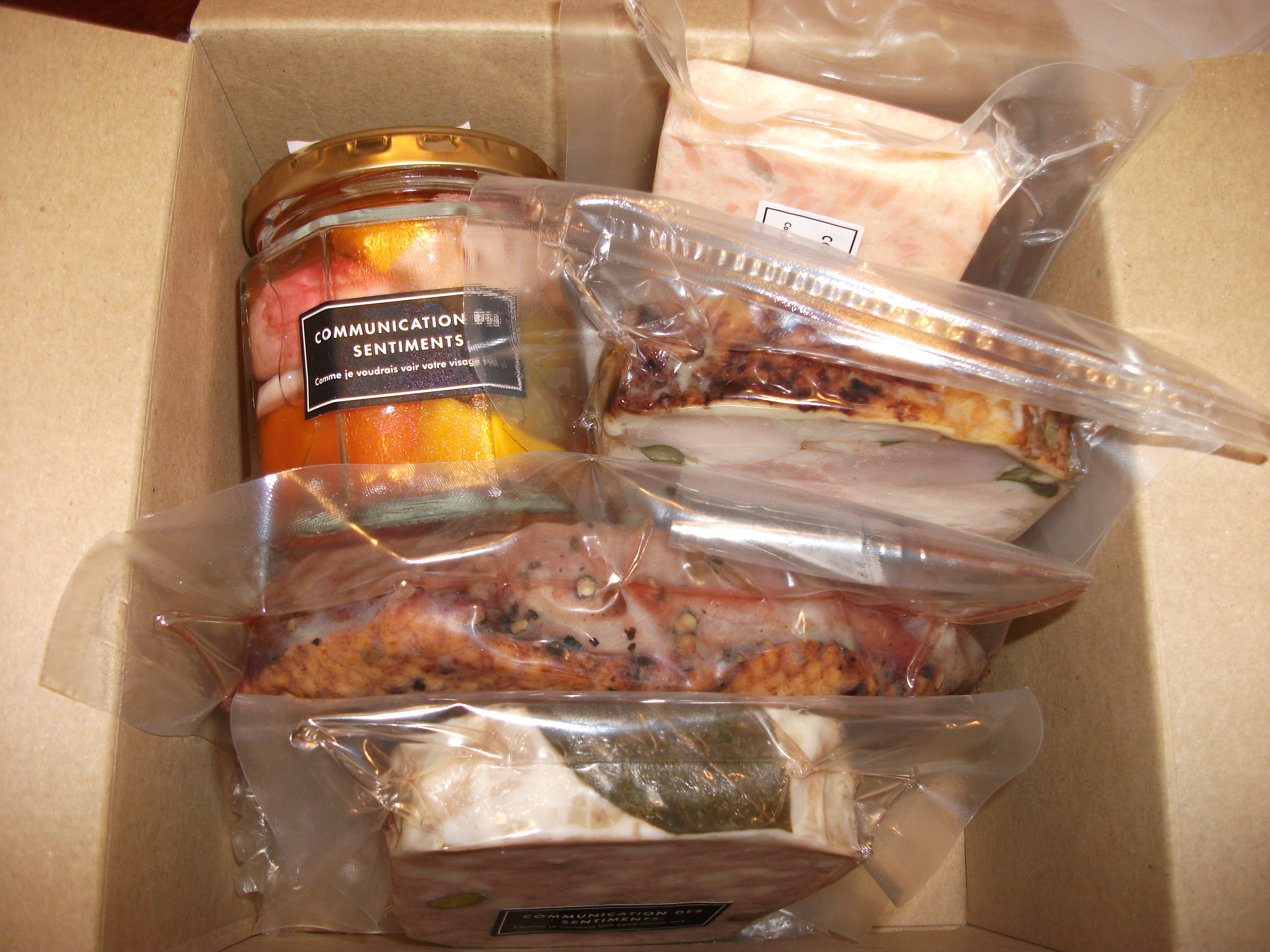 冷蔵で届いたパッケージは、予想以上にコンパクト。しかし、あけてみると、パリ在住時に愛読していた懐かしの日本語新聞OVNIに包まれ、センスの良いカードが添えられた充実の品々が。鴨肉の暖め方の丁寧な解説もついています。