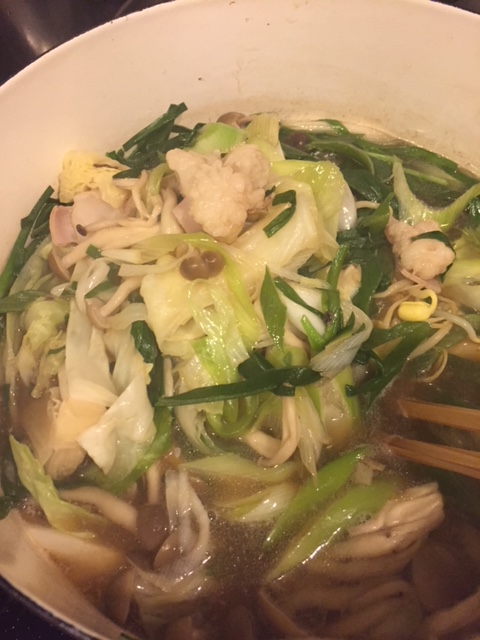 スープは出汁のきいた醤油ベースで、調理中から良い香りがしていました。
