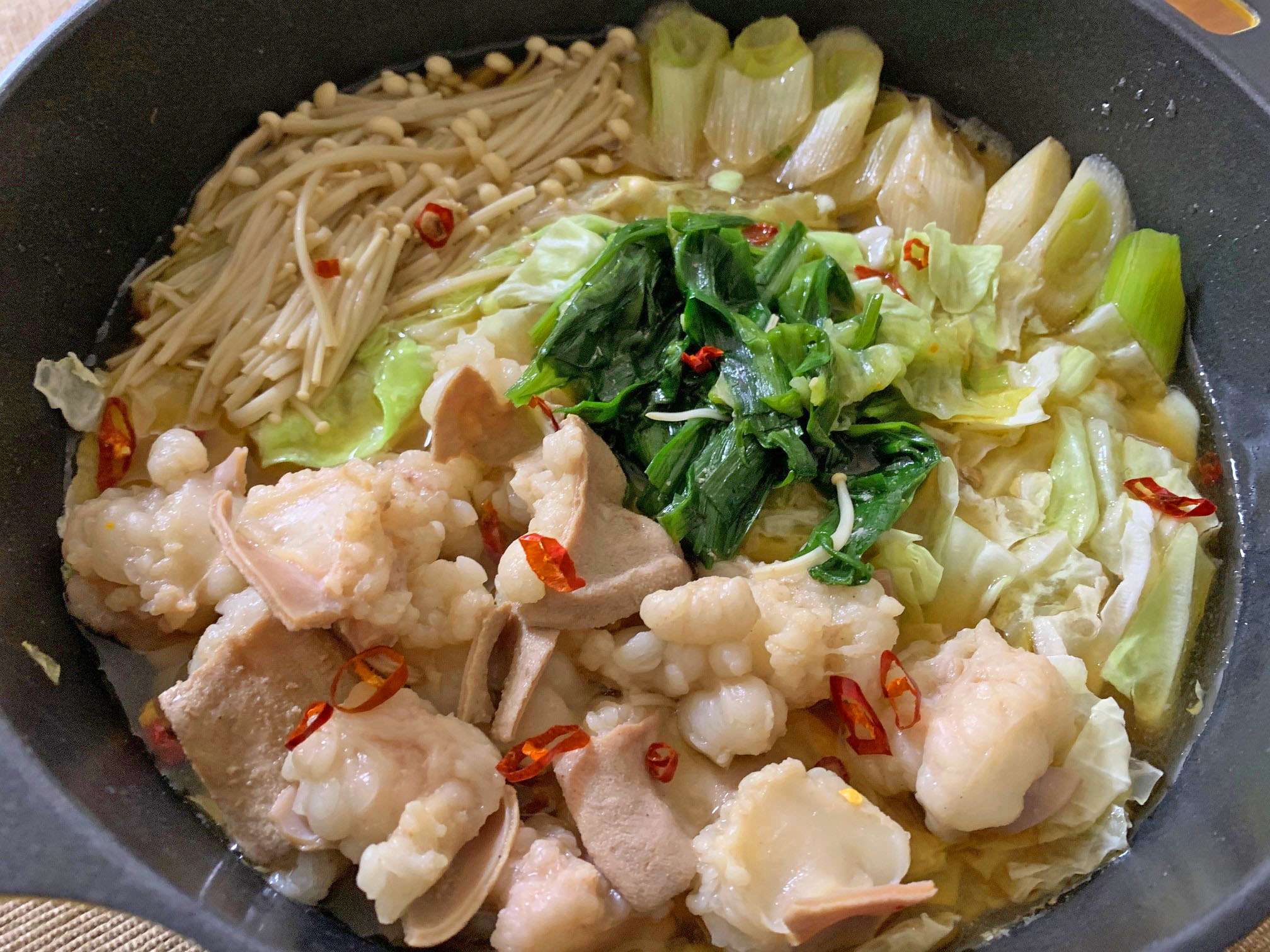 スープは濃縮タイプ、コプチャンは洗わずにそのまま使えるので下処理不要で、簡単に調理できました。