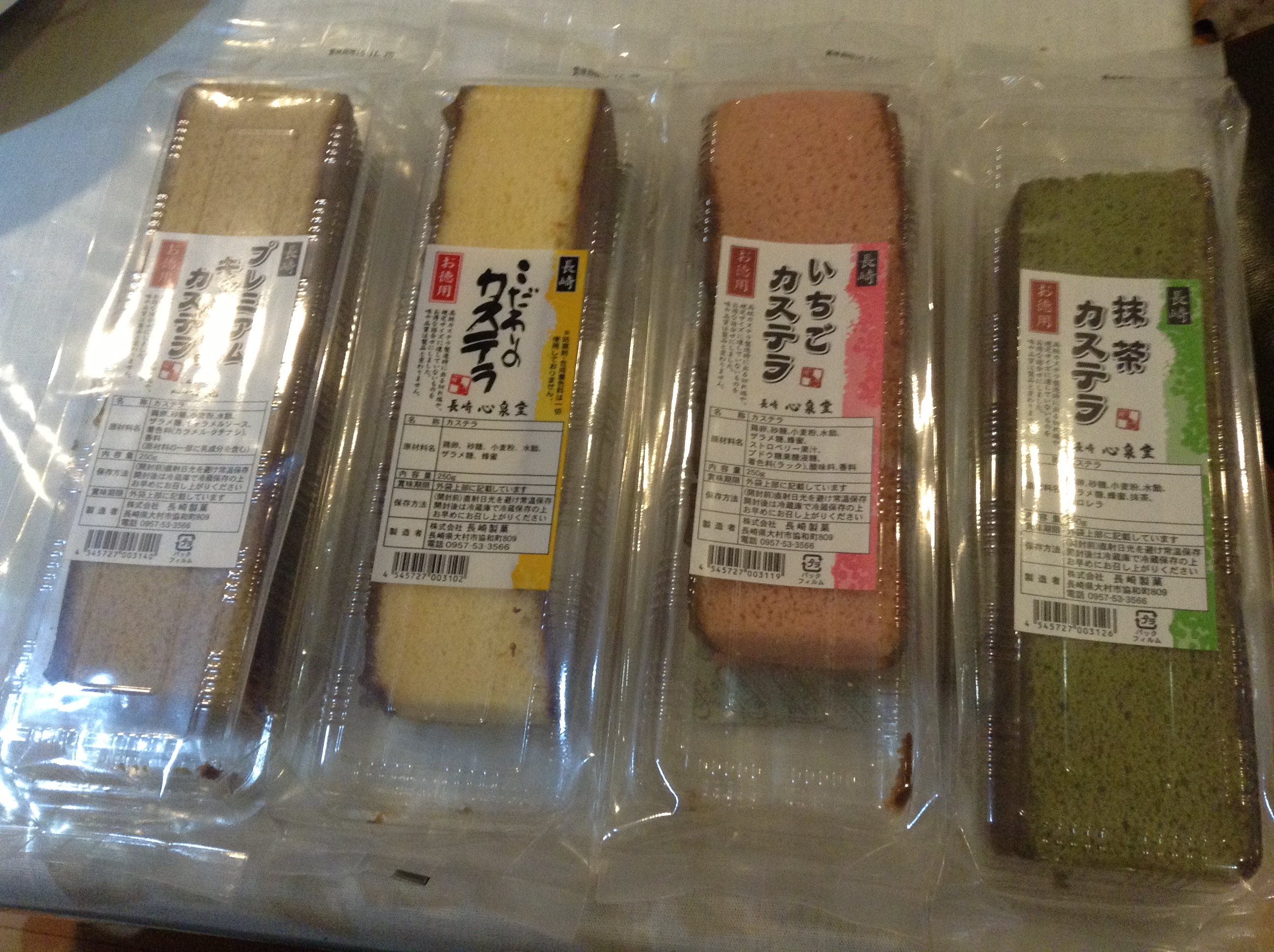 どのカステラも共通していたことは、とてもきめの細かいふんわりとしたカステラでした。またカステラの底についているザラメの味がとても美味しいことに驚きました。いろいろな味を加えると、その食品本来の美味しさや食感を損なうことがあるのですが、ショップさんのカステラはカステラ本来の味をきちんと残しながら、それぞれ加えた味を上手に引出していることに驚きました。4種ともどの年代にも気に入られる味だと思います。