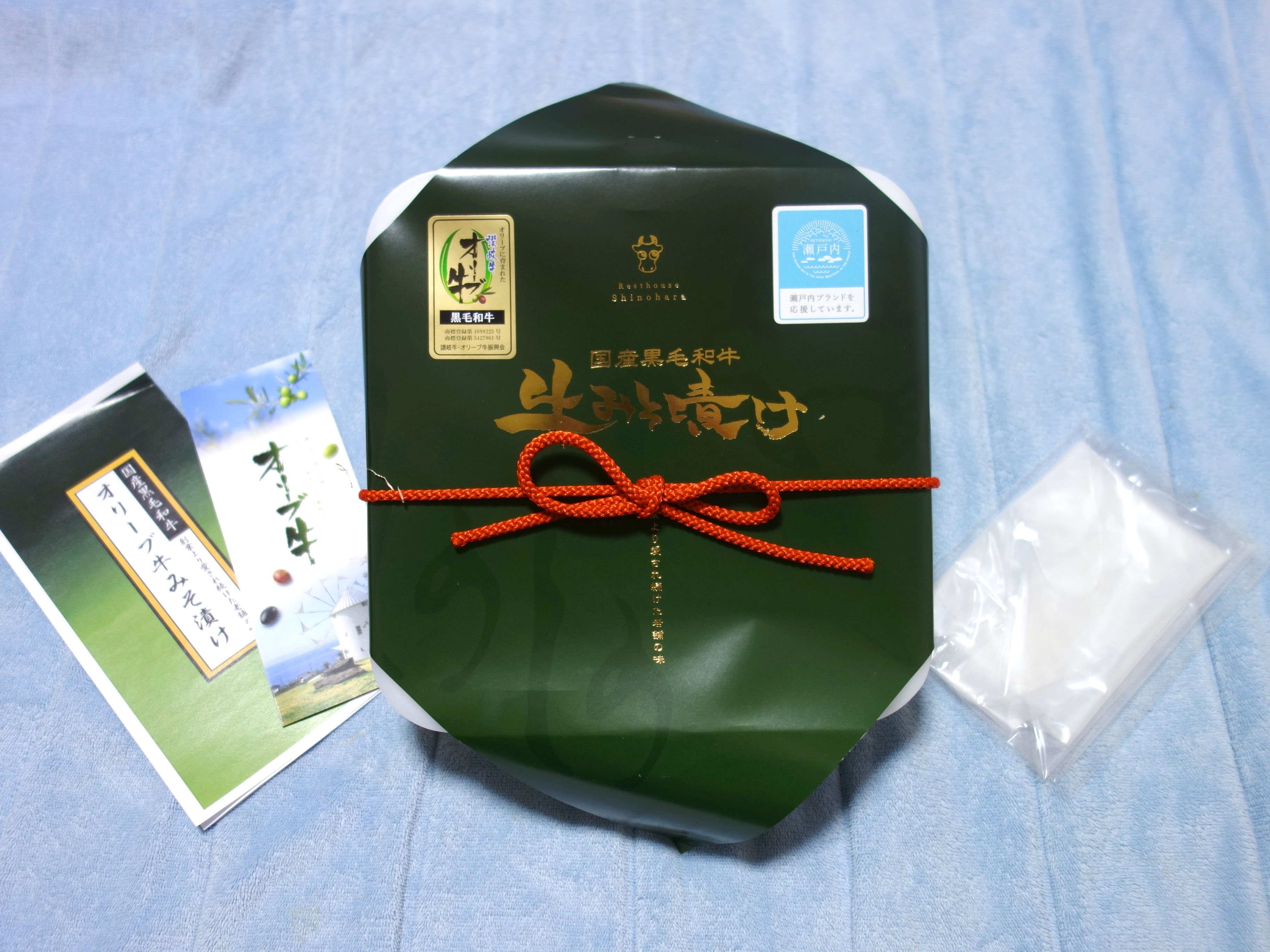あっさり美味しいオリーブ牛の「モモ・カタ・ロース」をじっくり甘みの強い白味噌とミリンで漬け込んでいます。白味噌に漬け込むことで肉が一段と柔らかくなります。焼くと香ばしい味噌の香りが漂い、酒の肴やお弁当のおかずに利用できます。オリーブ牛はオリーブ抽出後の果実を食べて育つため、他の黒毛和牛よりも旨味成分を多く含んでいます。