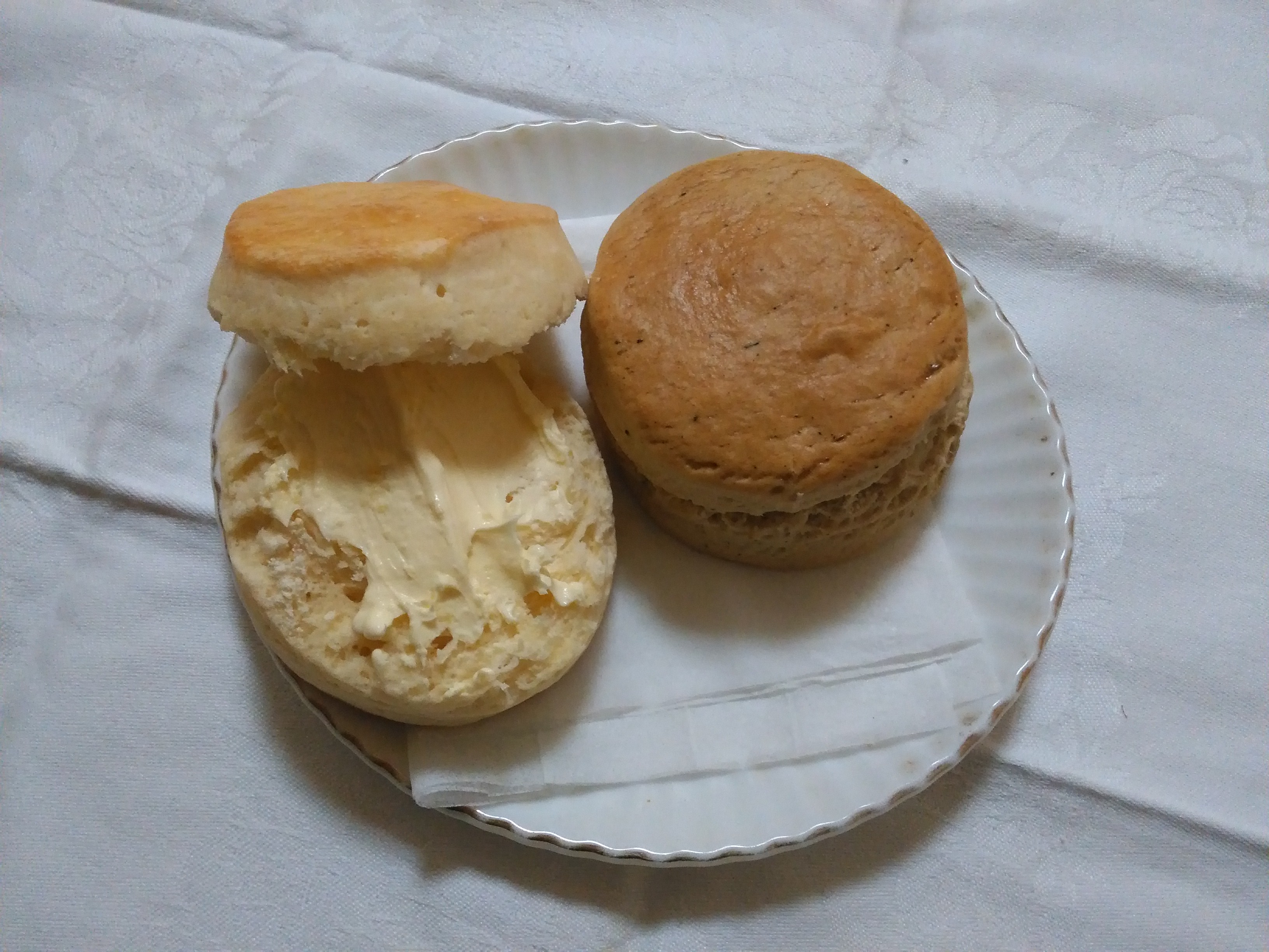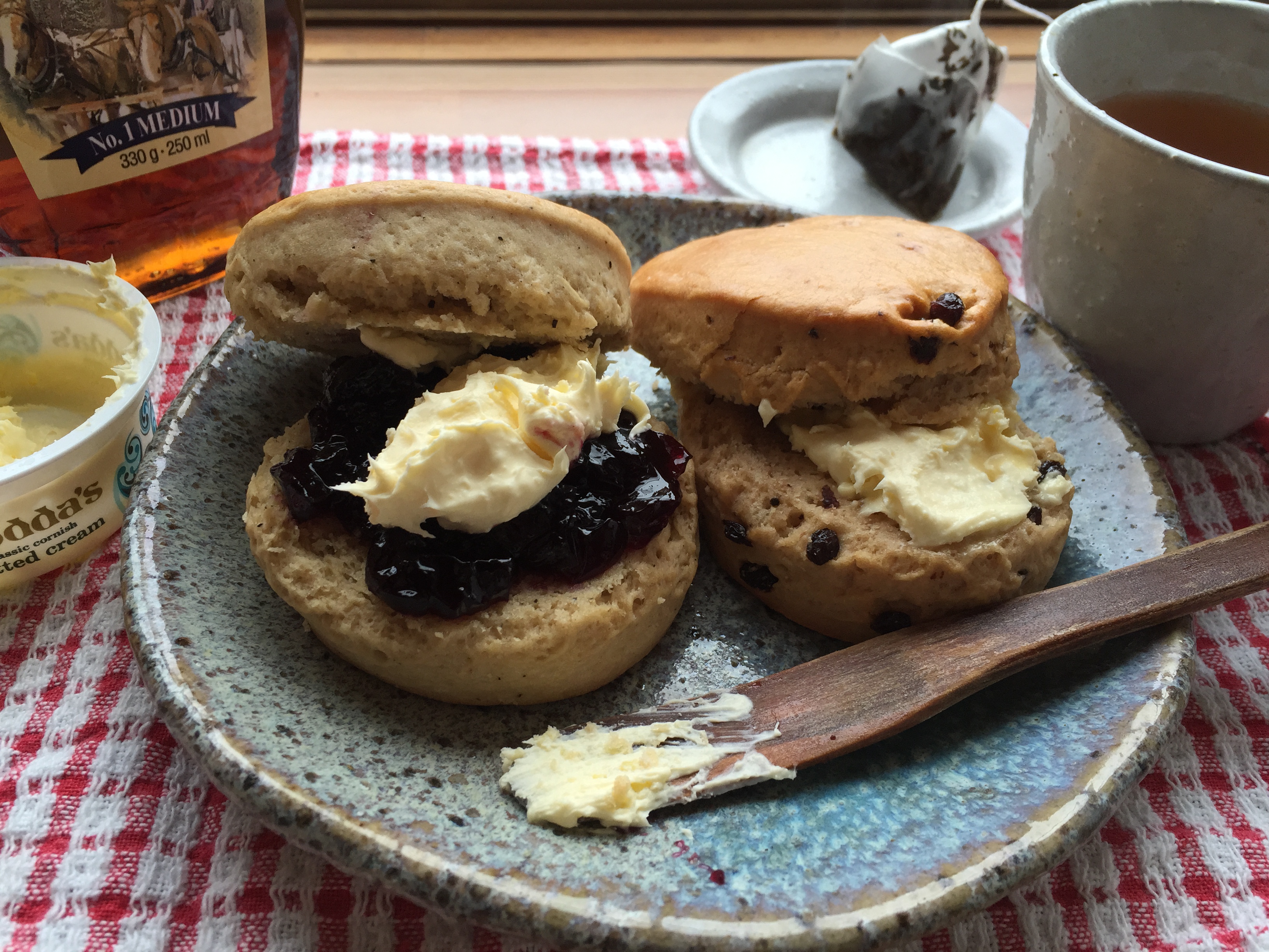 あつあつのうちにジャムやメイプルシロップとクロテッドクリームをのせて頂きました。