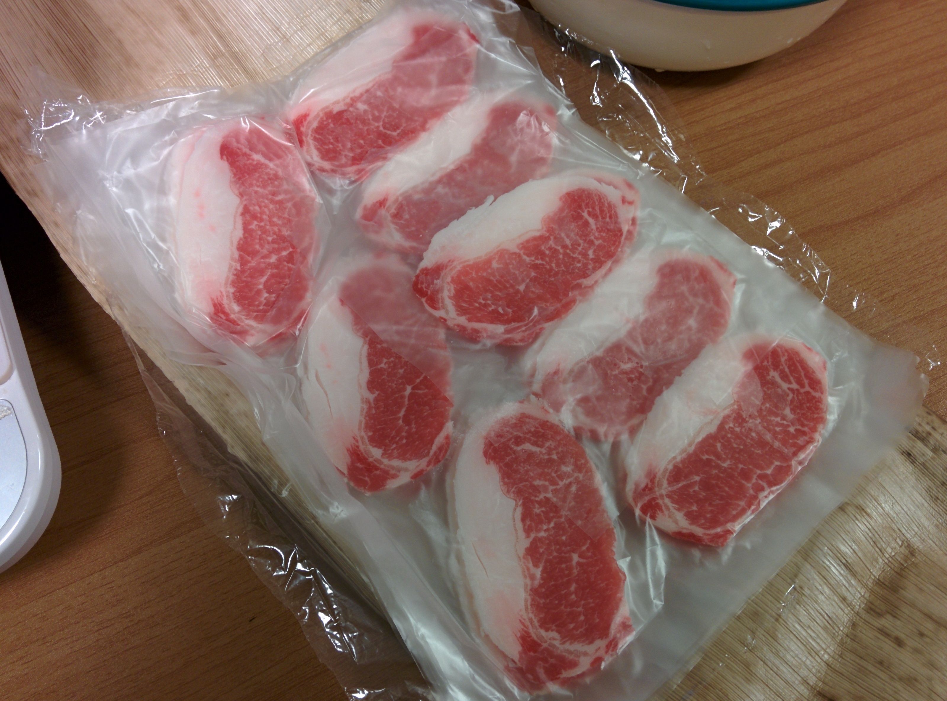 冷蔵庫でじっくりと解凍したお肉を早速いただきます!