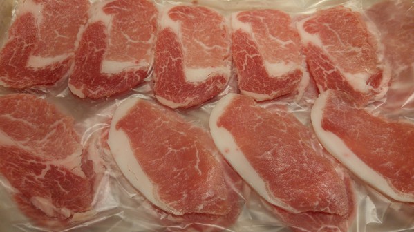 お肉は透明のシートに1枚1枚丁寧に並べられていて、天然の竹の皮に包まれています。竹の皮は通気性に優れ、パックよりも保存性が格段に良くなるそうです。