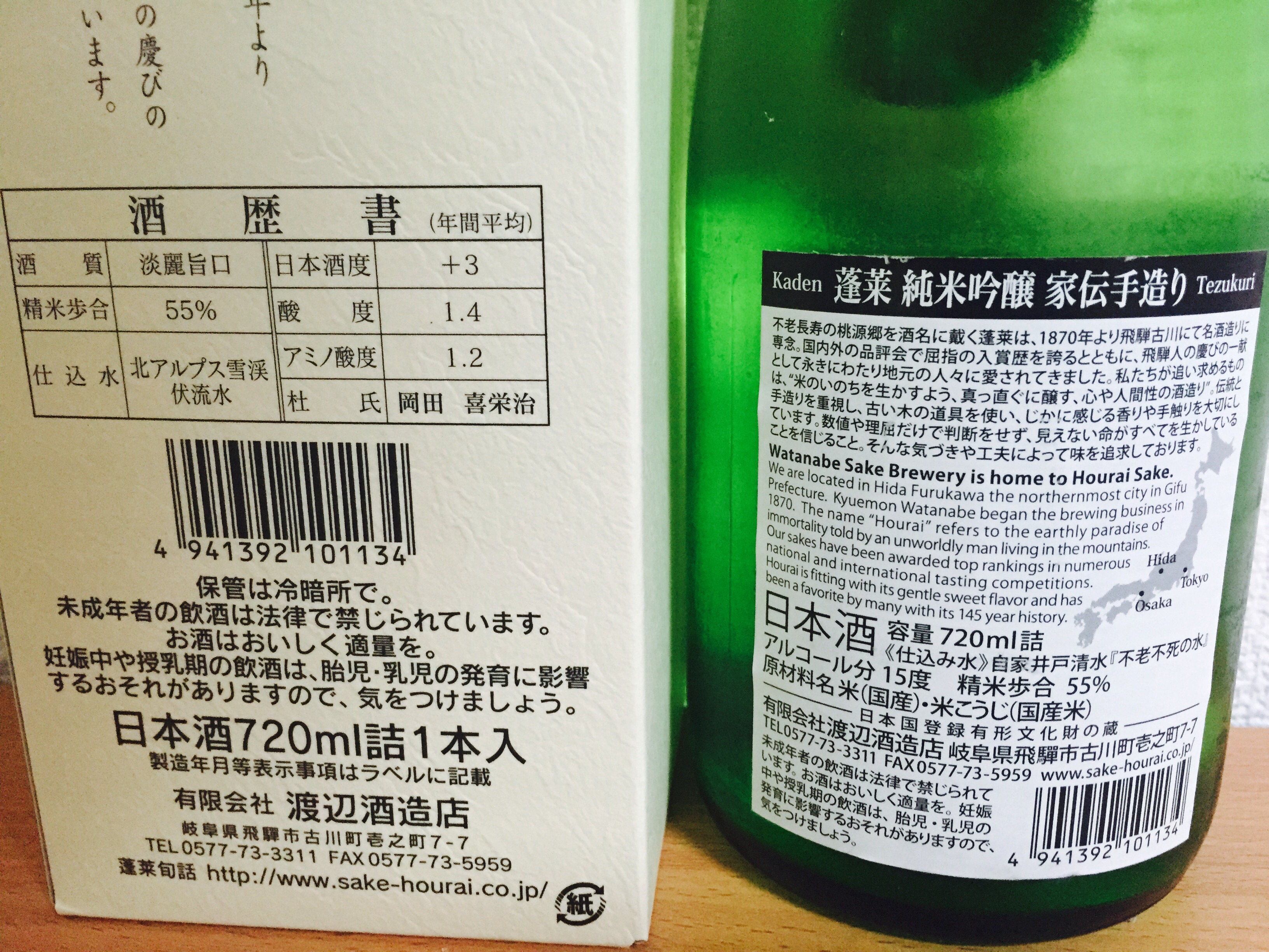 蓬莱 純米吟醸 家伝手造り720ml 渡辺酒造店公式通販