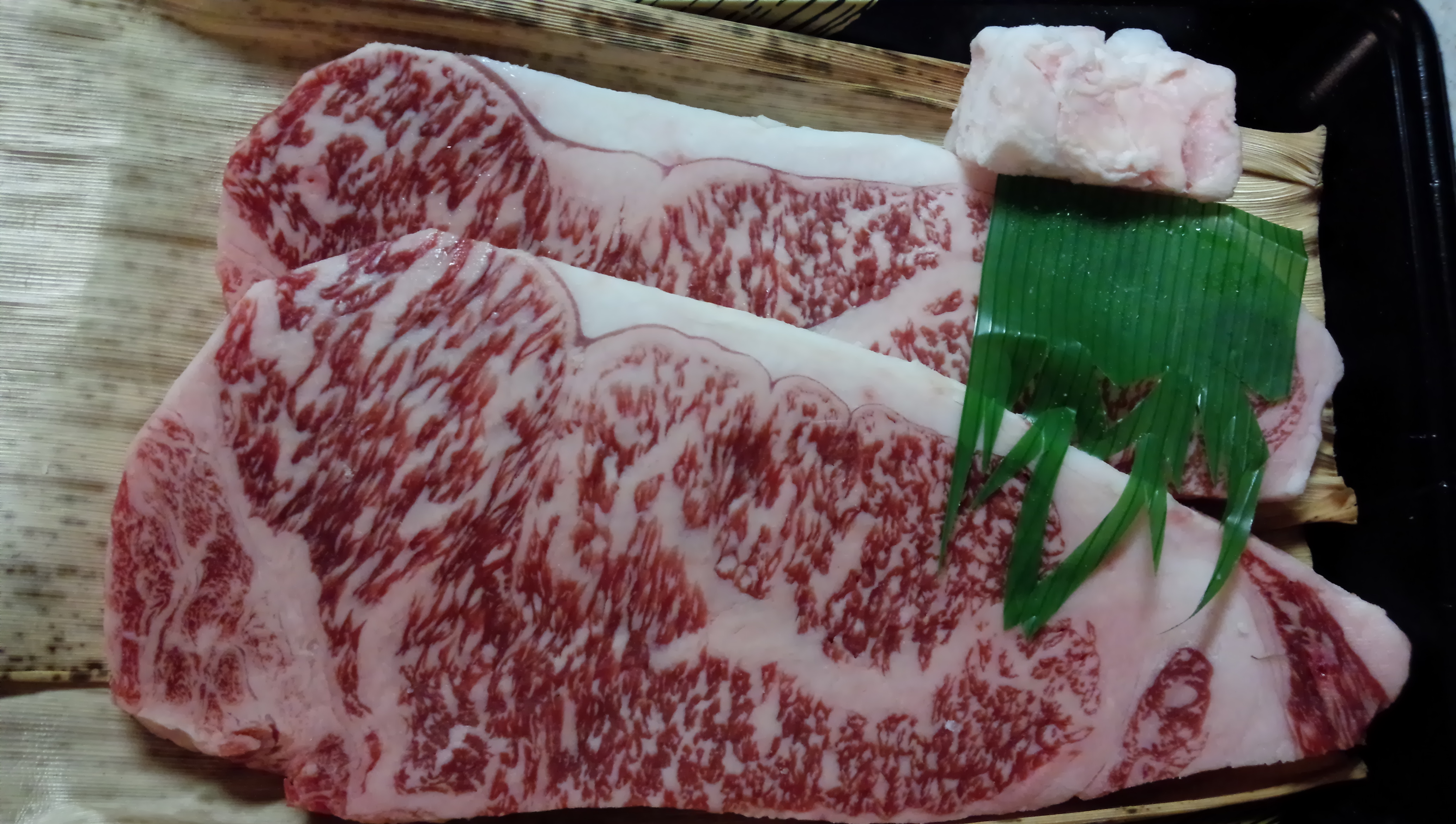 まず箱を開けてみると高級感漂う竹皮で包まれています。きれいな霜降りが入っていて食べる前から期待が高まります。