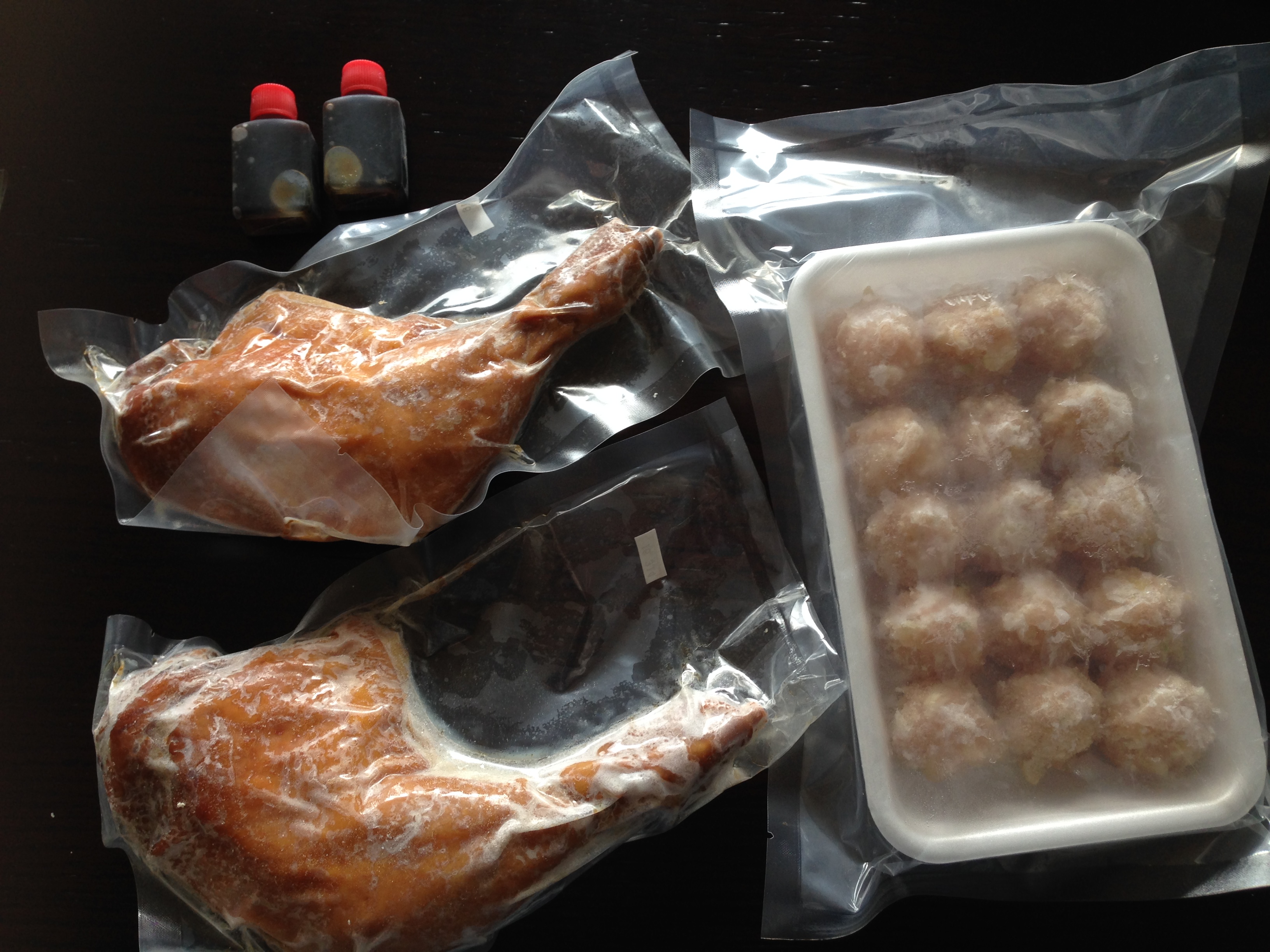 届いたのが夜だったので、骨付きローストチキンは次の日の夕食の為にそのまま冷蔵庫で解凍し、紀州うめどり鶏つくねは冷凍庫へ入れました(*≧ω≦*)