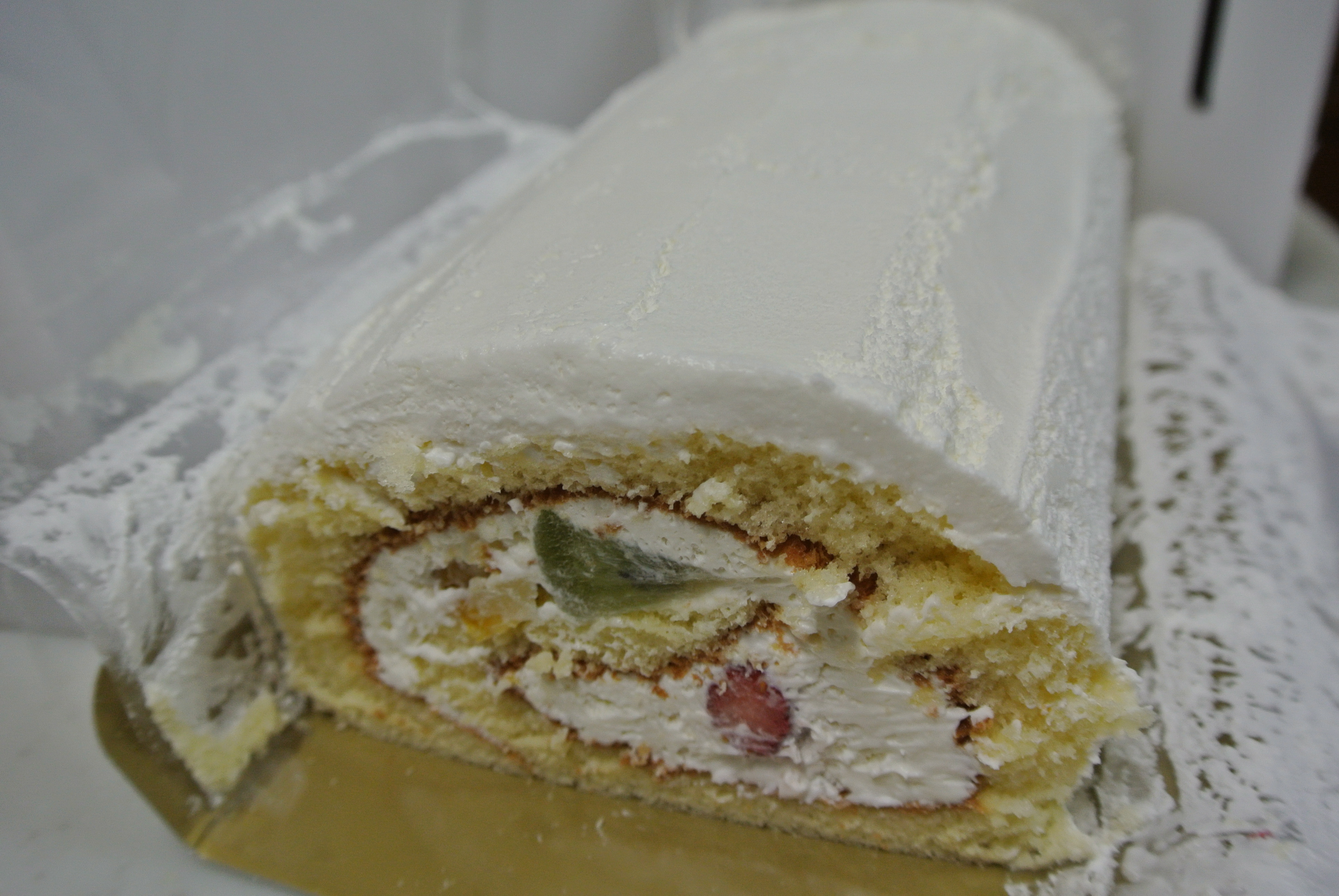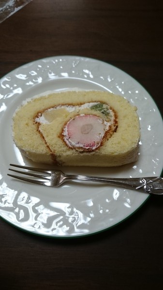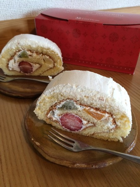 食べてみると、普段食べるロールケーキと違い、周りにもたっぷりクリームが塗ってあるので、しつこく感じるかと思いきや、甘すぎず、フルーツとも相性があって、いくらでも食べられそうな感じでした。