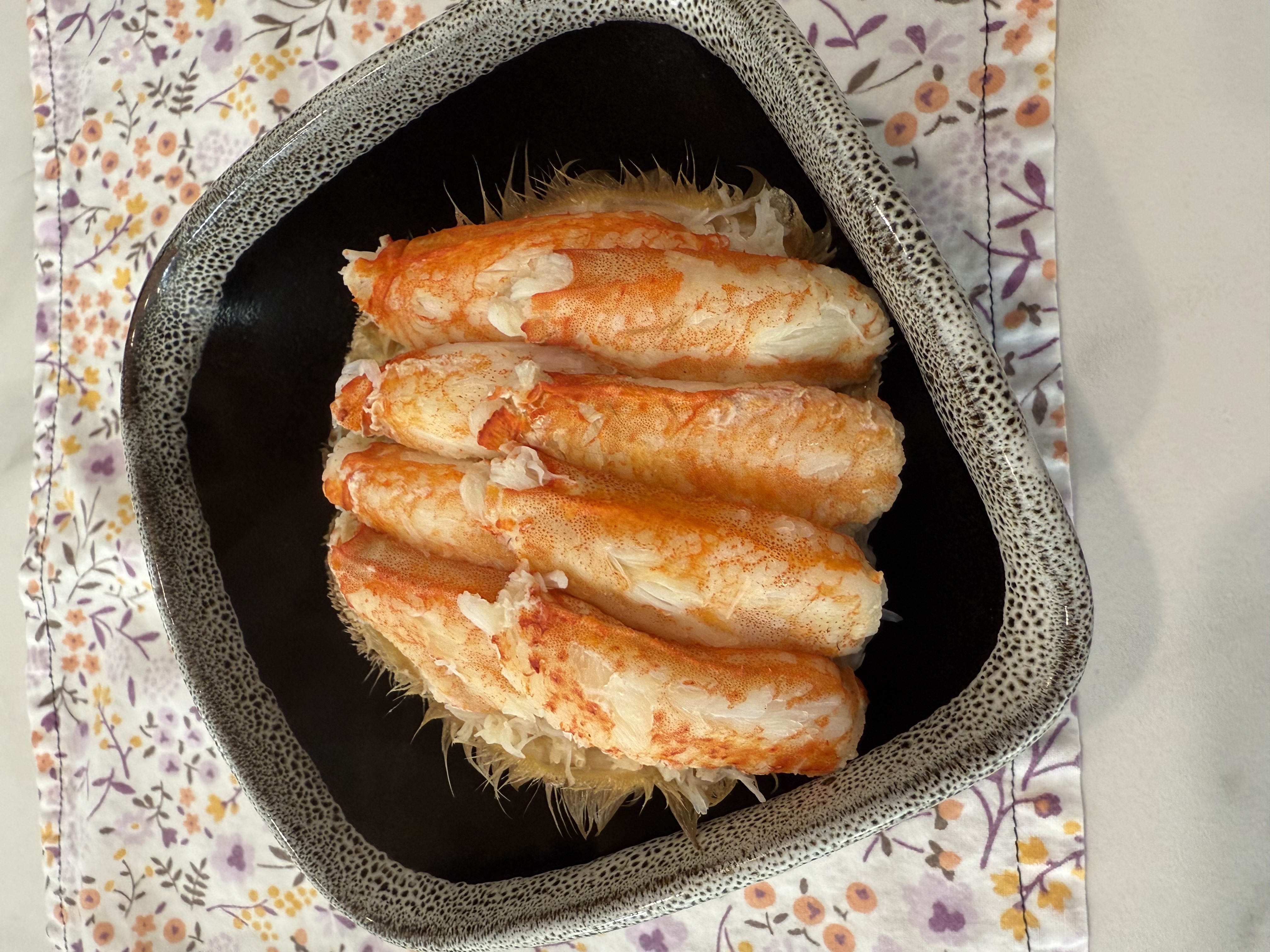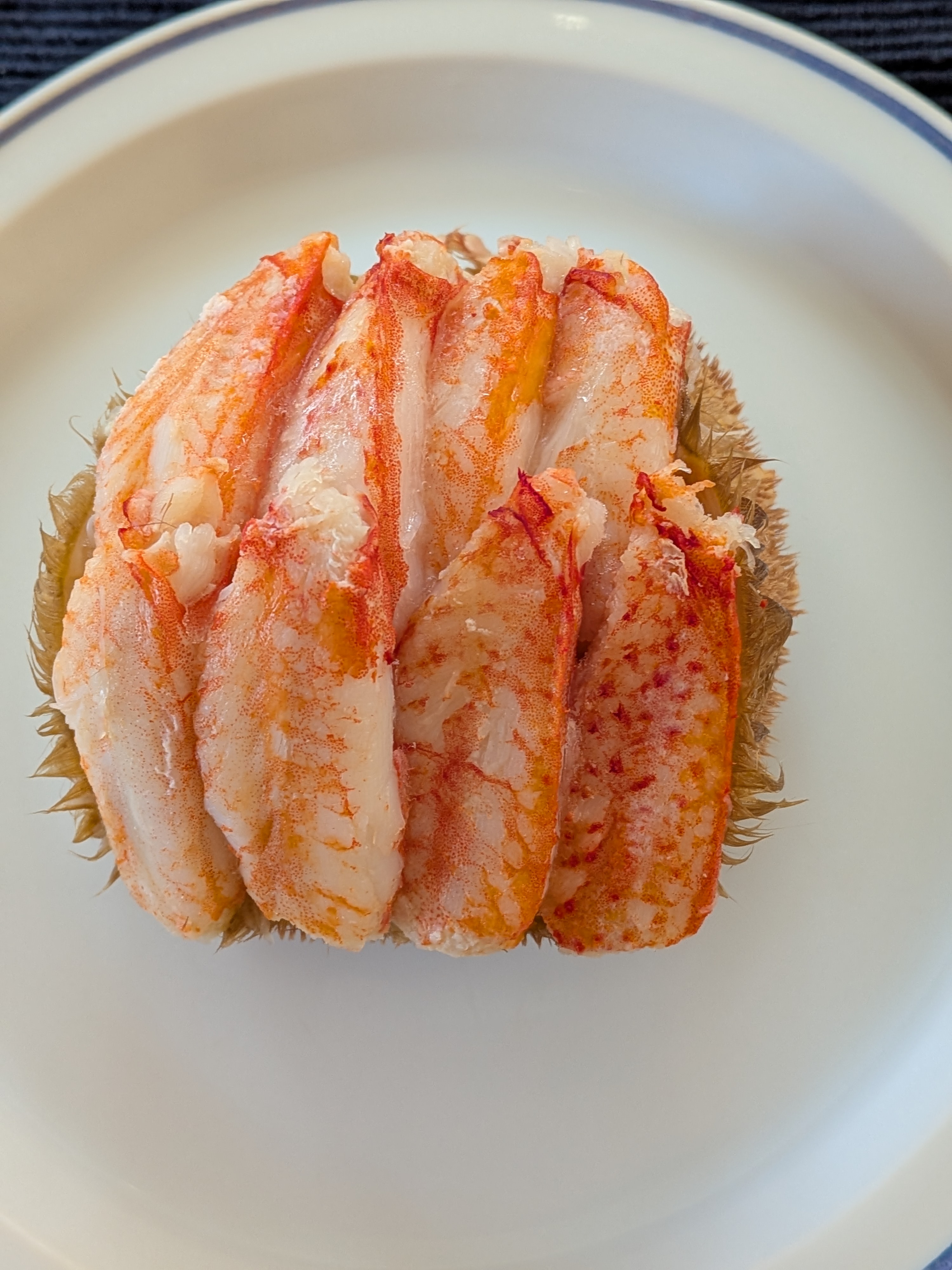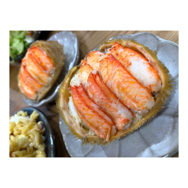 職人が、丁寧に手作業で毛ガニを一尾丸ごと捌いて甲羅に盛り付けられているそう。