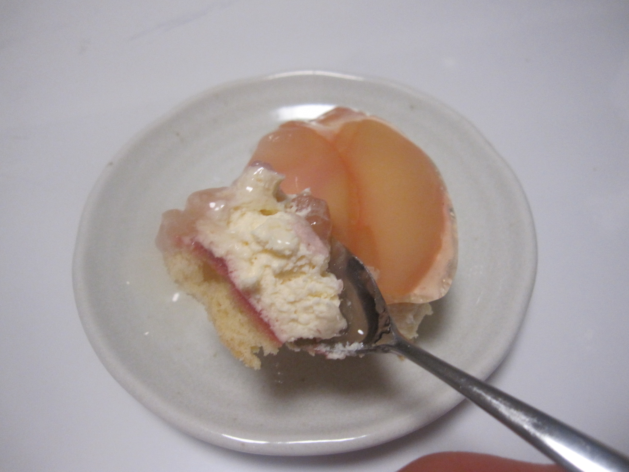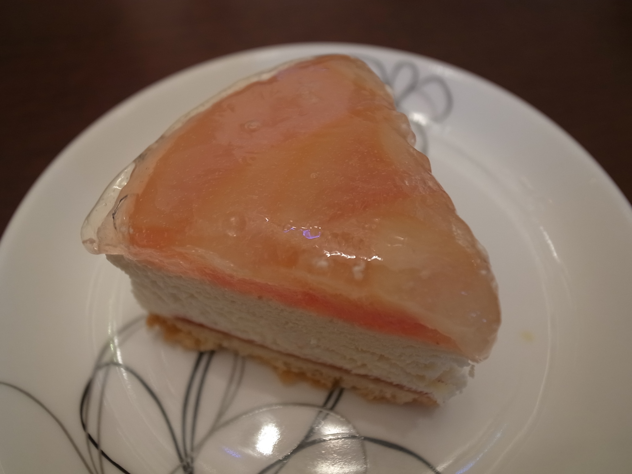 桃のスライスは、レアチーズケーキを邪魔しないくらいの薄さで食べやすく、レアチーズケーキは濃厚すぎず甘過ぎない程度でこちらも食べやすかったです。