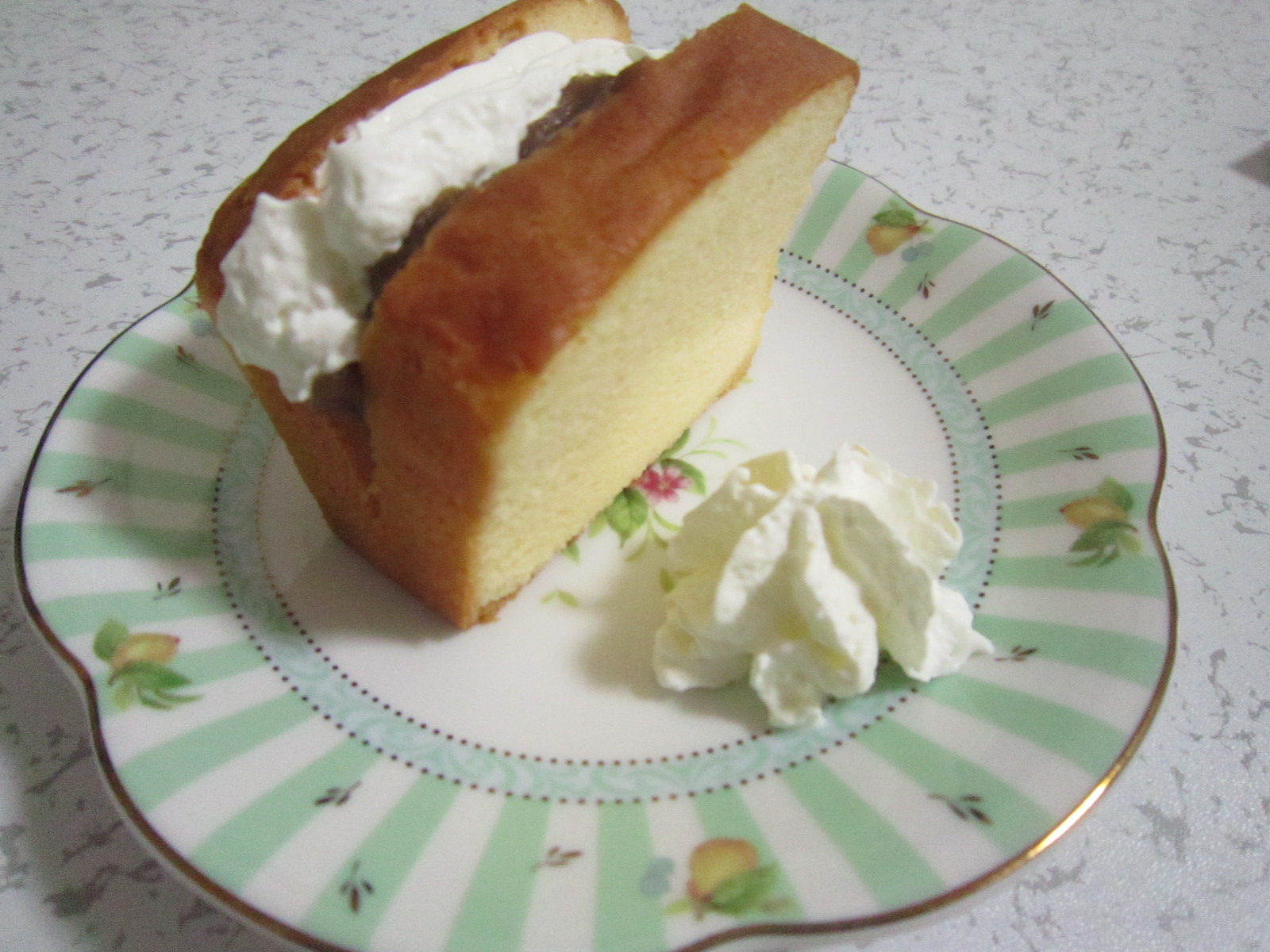 ・より美味しくいただくアレンジとして、少し厚めに切った”さけぇき”の真ん中に、切れ目を入れ、そこに”ホイップクリーム”や”お好みのジャム”、”あんこ”などを挟むと、ちょっと感動的な味に生まれ変わります!(ホイップクリーム&あんこは本当に美味しいです!)