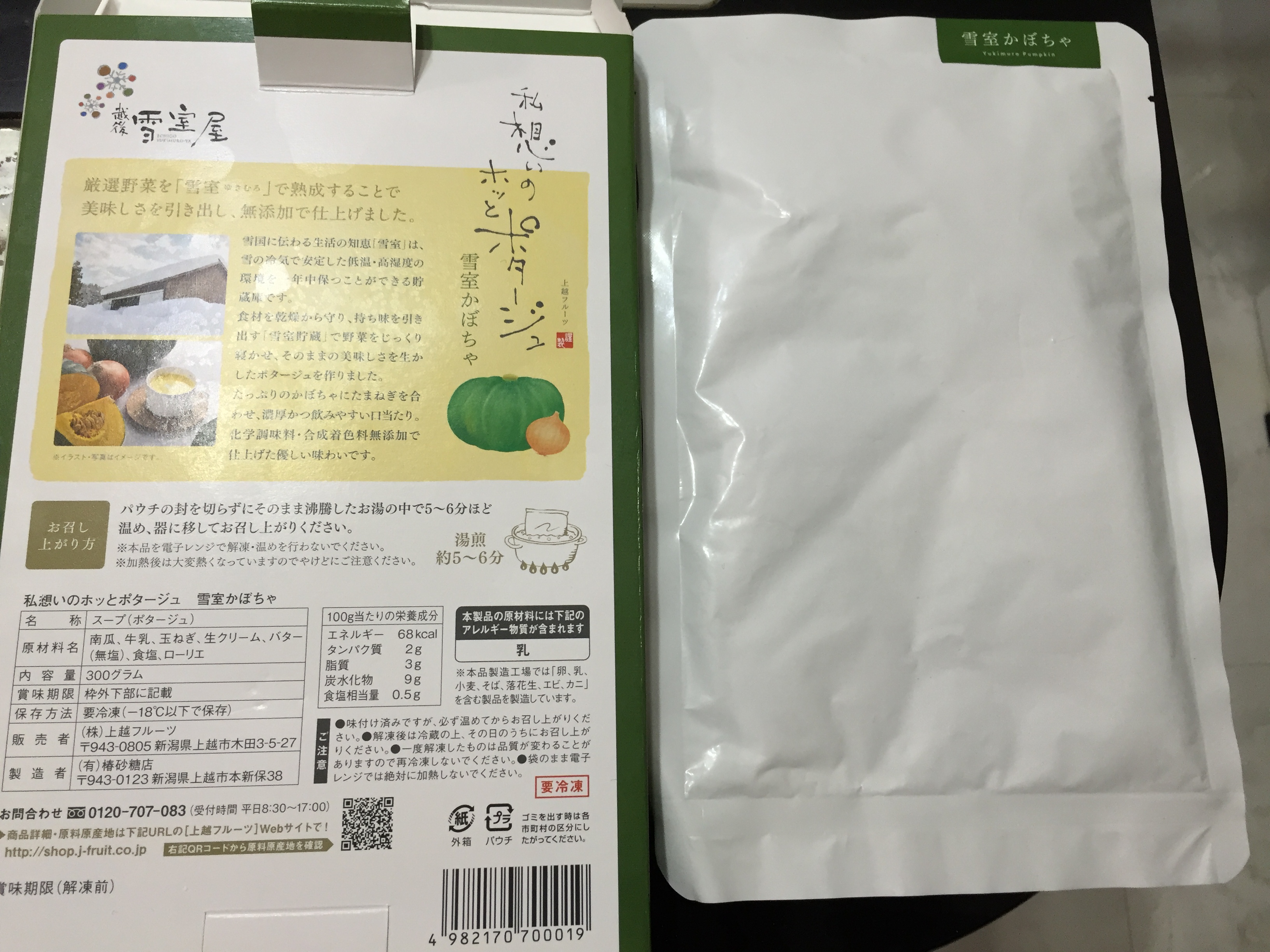 雪国に古くから伝わる「雪室(ゆきむろ)」は、雪の冷気で安定した低温・高湿度環境を保つことができる貯蔵庫。食材を乾燥から守り、持ち味を引き出す「雪室貯蔵」で素材の味を引出し、その味を生かして作られたポタージュです。