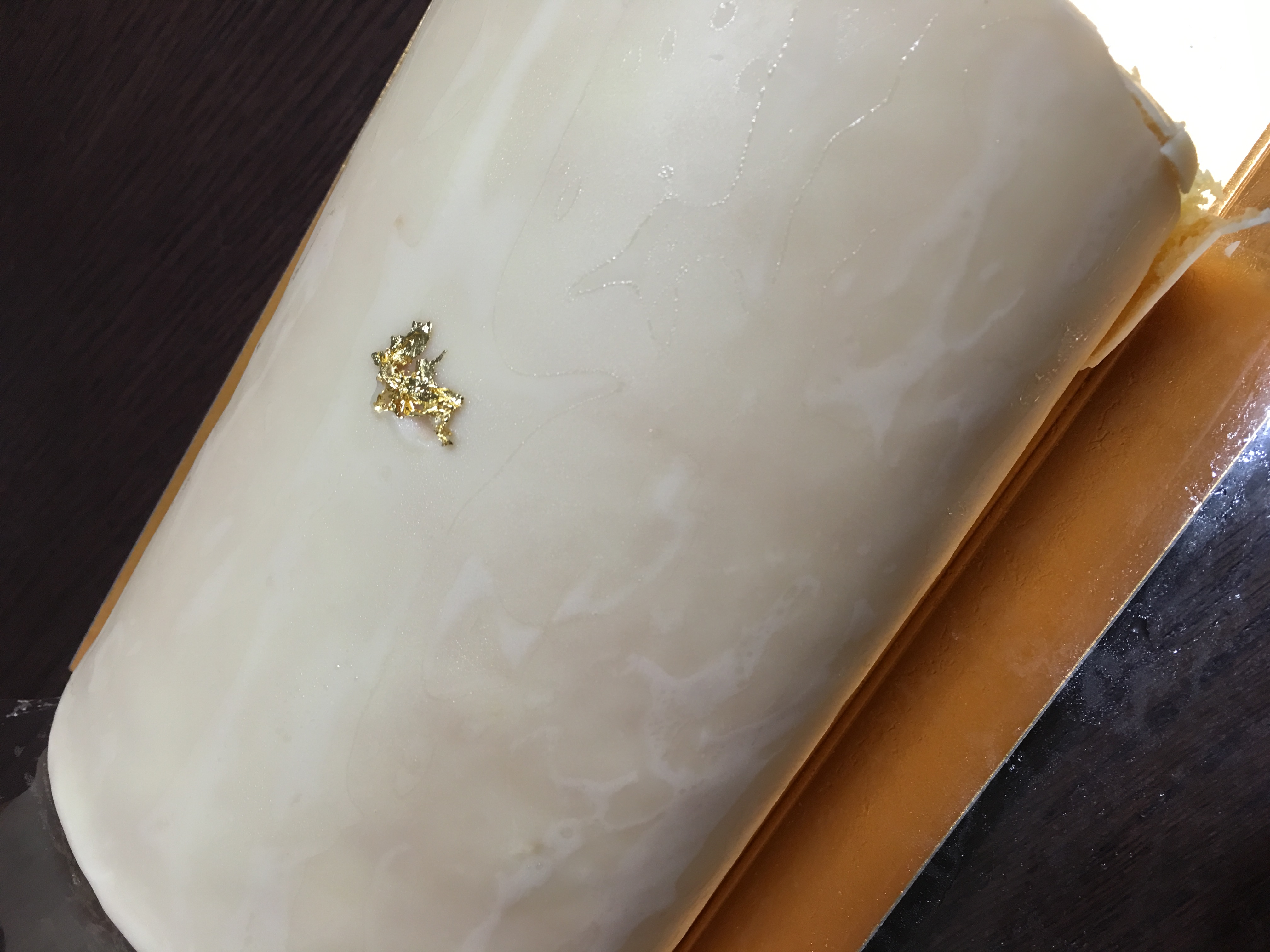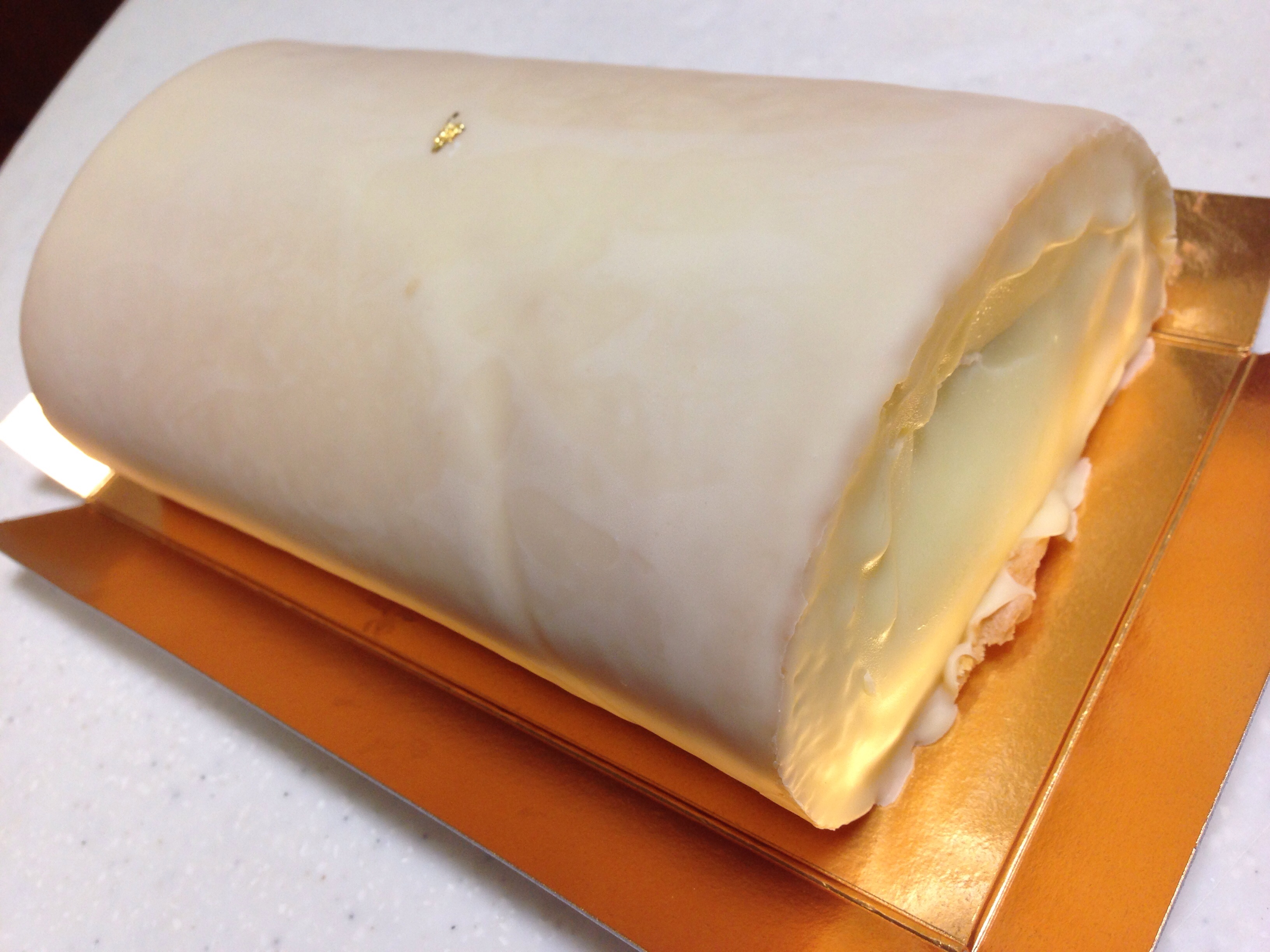真っ白にコーティングされたロールケーキには上品さも感じ、なんと金箔が乗ってるじゃないですかぁぁ!!