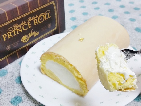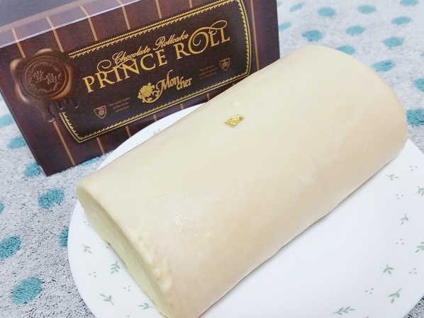 ホワイトチョコ部分は、パリパリとした食感で、中のロールケーキはもちろんしっとりふわふわ~!