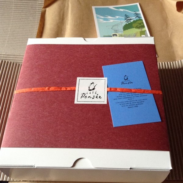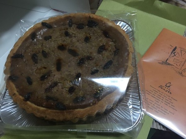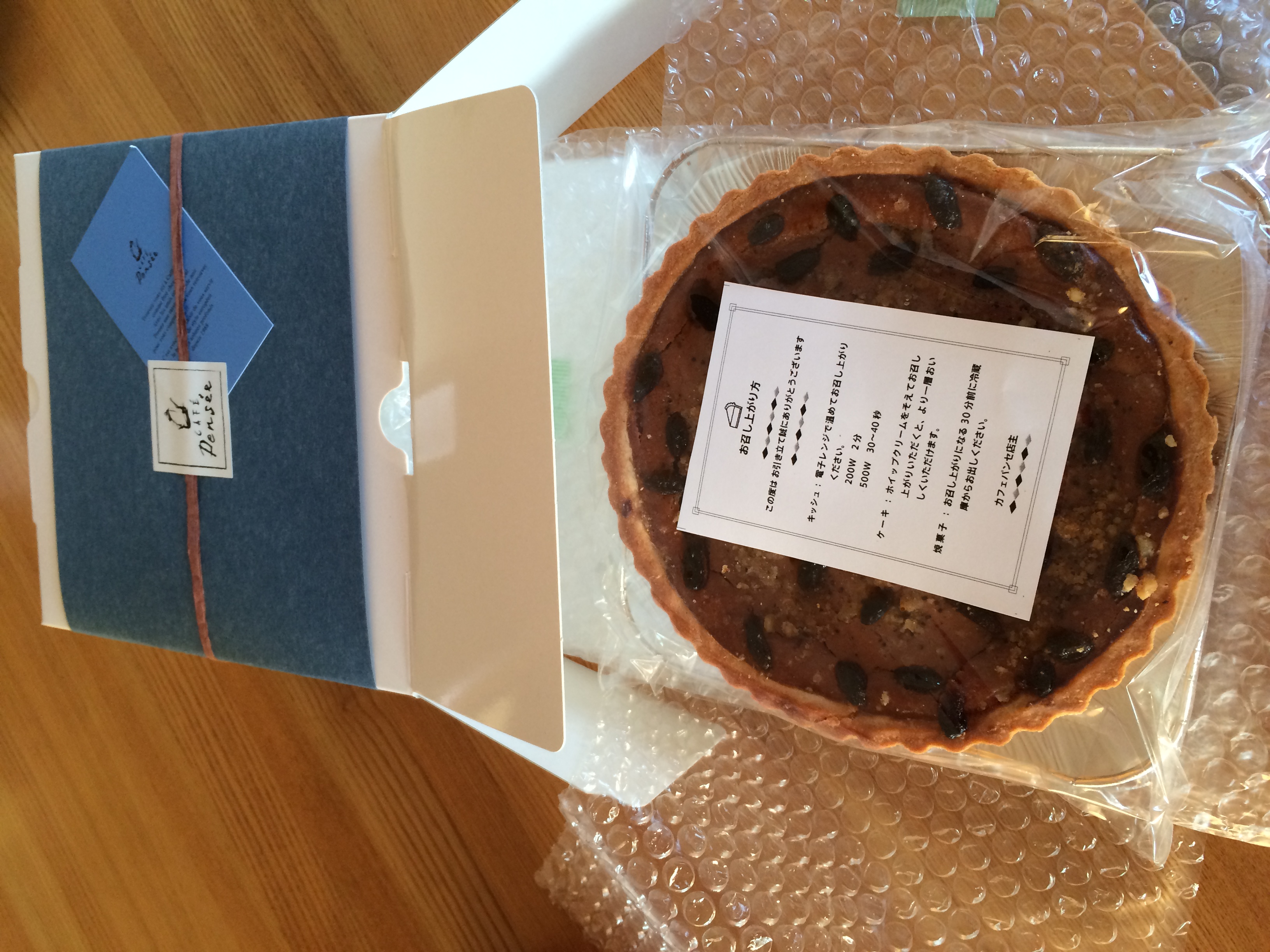 早速、開封。・・・が、外側の茶色い紙をはがし、紐を解いて次の包装を開け、箱を開け、プチプチをはがし、さらにビニールに包まれている!なんて御丁寧な・・・まるでマトリョーシカのように大切に包装されたタルト(笑)。お店の方の心遣いと愛情が伝わりました。