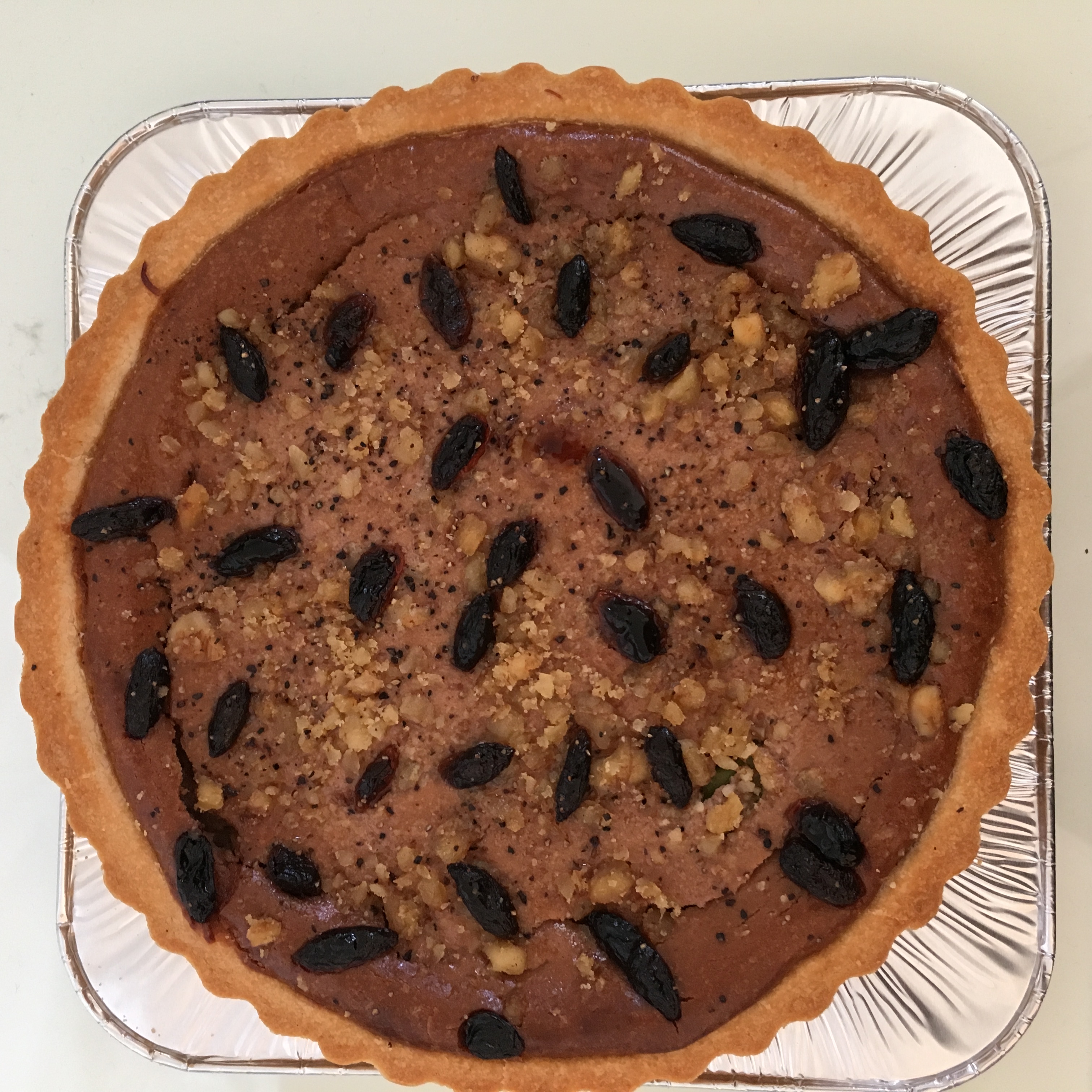 森のバターとも言われ栄養価の高いフレッシュなアボカドと、エスプレッソ、チョコレートを加えたクリームチーズが絶妙なコンビネーションのタルト。甘さ控えめ、クリームチーズのコクがアボカドとマッチして、奥行きのある味わいです。またカットした断面に現れる、アボカドの緑色とチョコレート色の対比は、他にはない鮮やかな色合い。上面にトッピングされたクコの実、クルミ、ブラックペッパーと、一風変わった素材が、モカチーズとアボカドの味をさらに引き立てます。