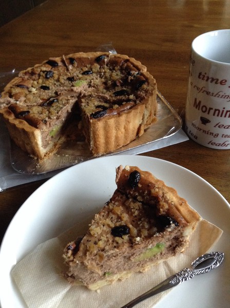 ホールのタルトは思ったよりも大きく重さもどっしり。6つ切りだと大き過ぎるので8つ切りにしてみました。切り口から覗くアボカドに家族から「お~!」と言うどよめきが(笑)