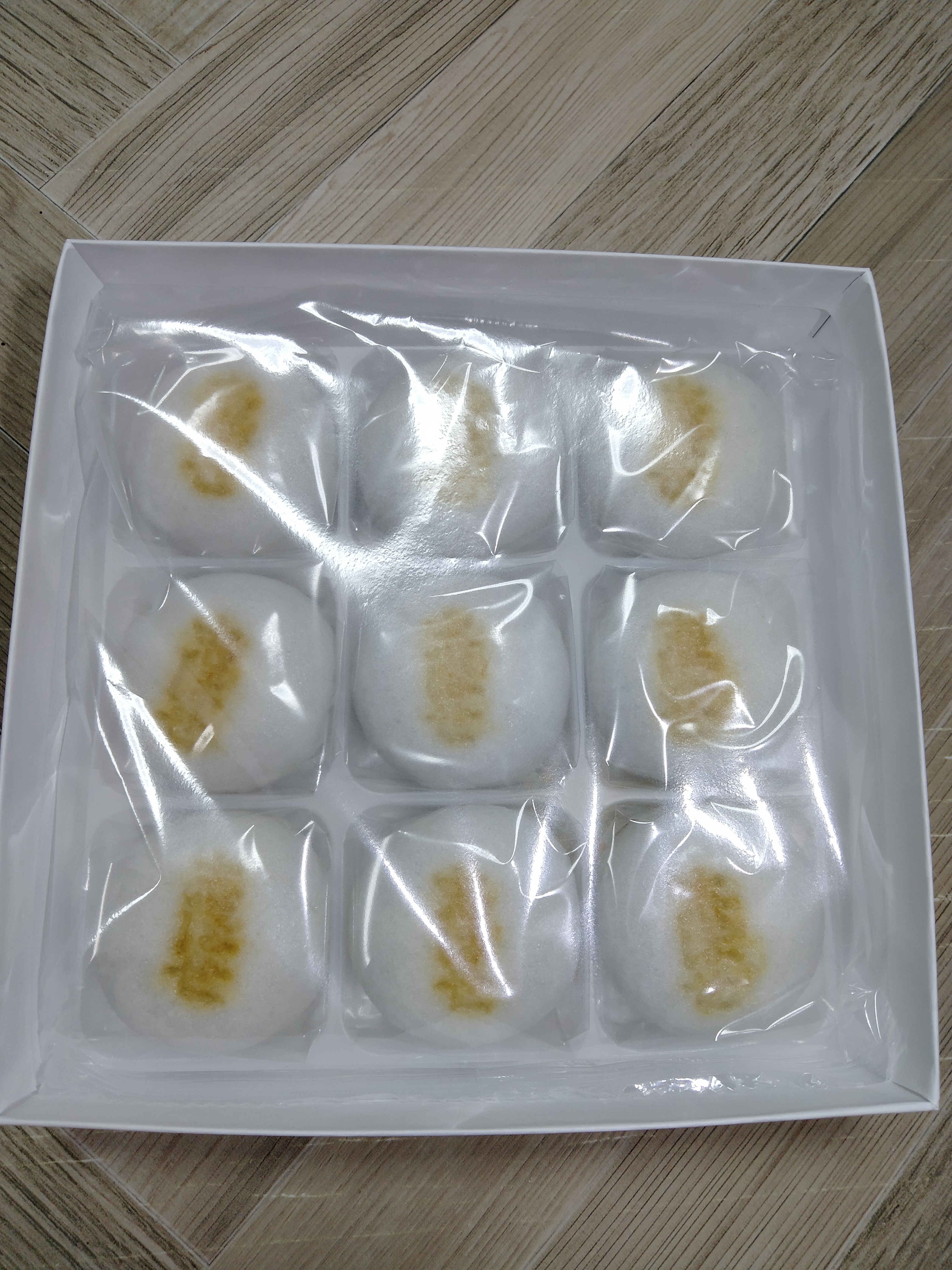 中を開けると厚手のビニールパックの中にお饅頭が9個入ってました。